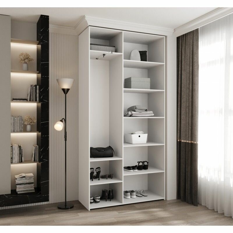 Шкаф для одежды распашной Нонтон Луас, 120 см, 7 полок и штанга, белый глянец