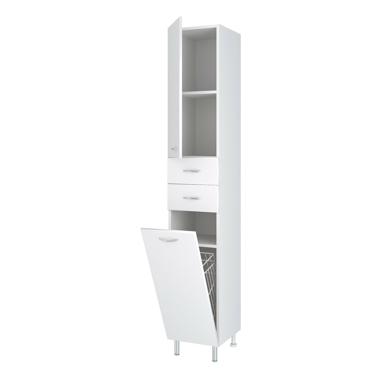 Шкаф пенал Runo Эконом 30 L 00000000124 с бельевой корзиной Белый