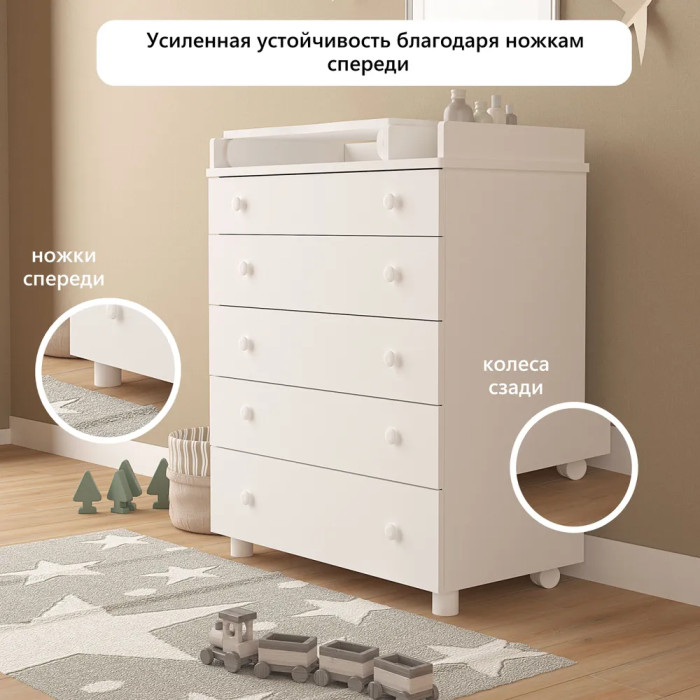 Комод Forest kids Vikki soft пеленальный (5 ящиков) белый интересное: