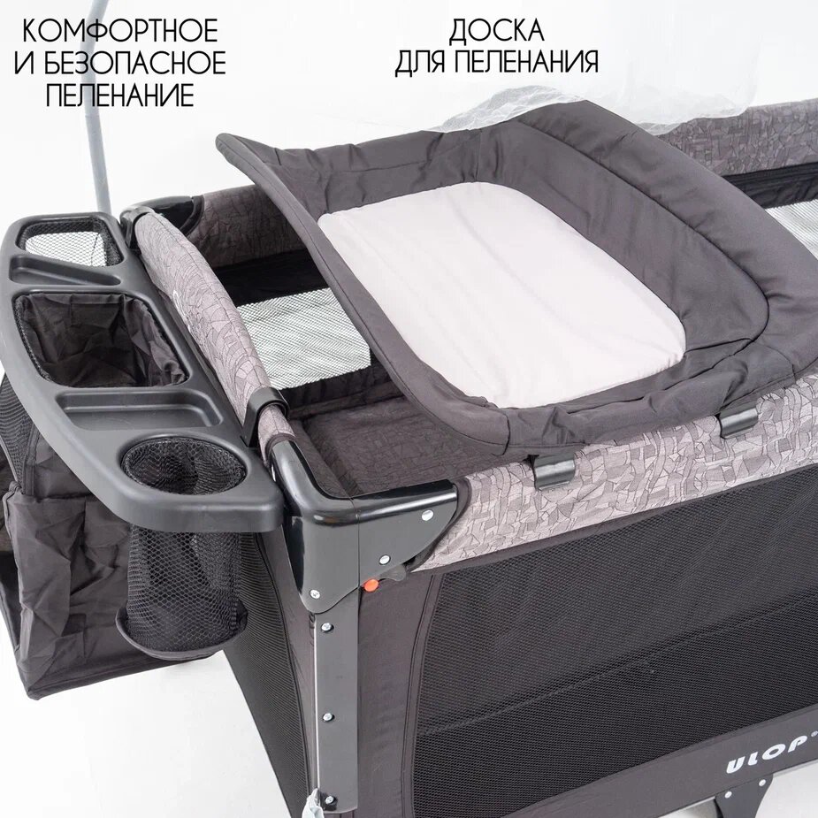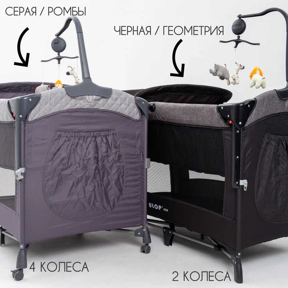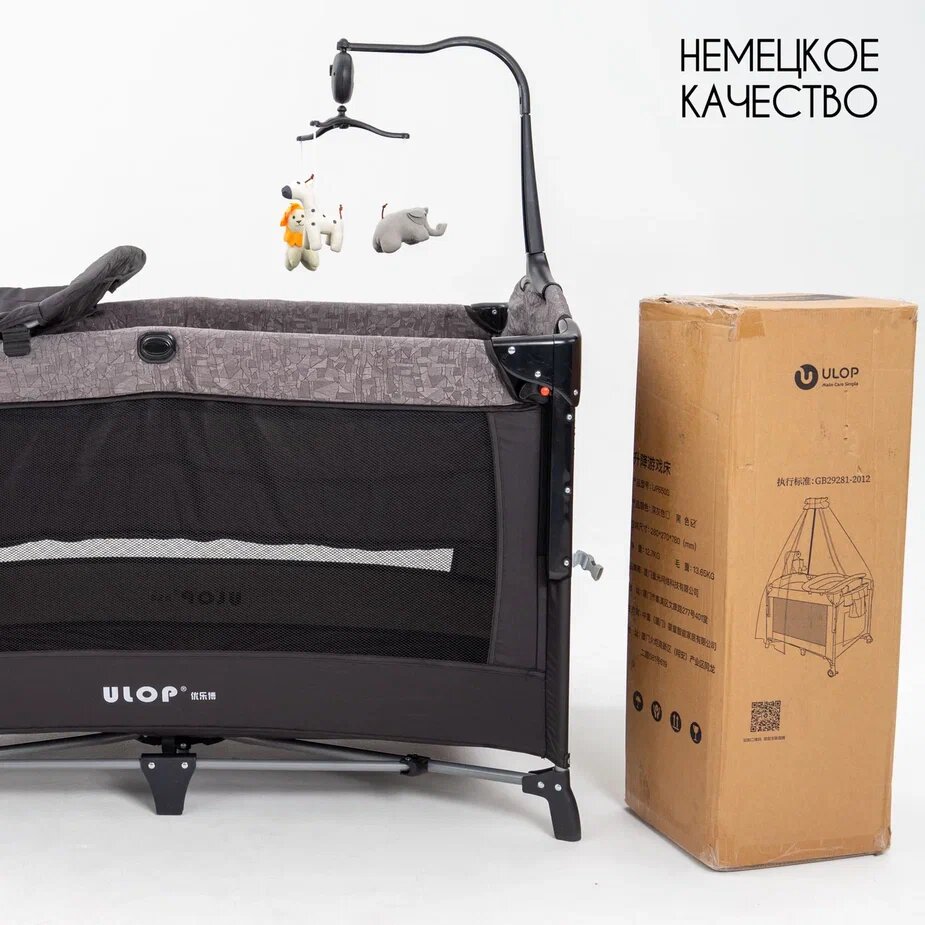 Детская складная кровать для новорожденных ULOP с матрасом, 70*110*76 см, черная, приставная, манеж, пеленальный столик интересное: