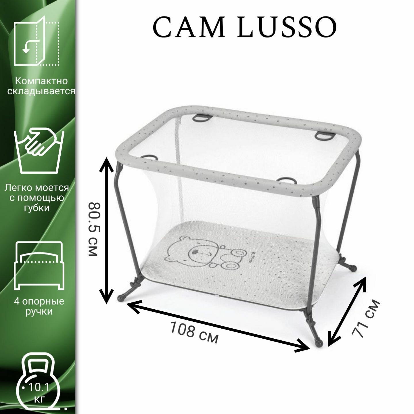 Манеж детский Cam Lusso, группа 0,5/3, Тедди серый-серый интересное: