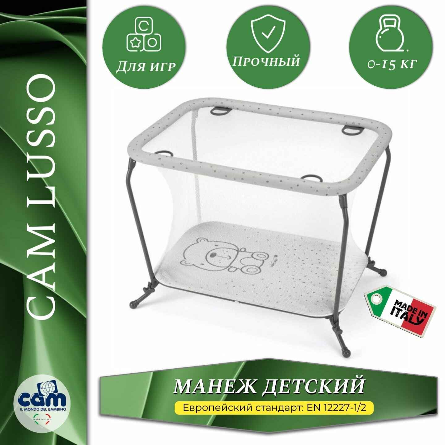 Манеж детский игровой Cam Lusso, группа 0,5/3, Тедди серый