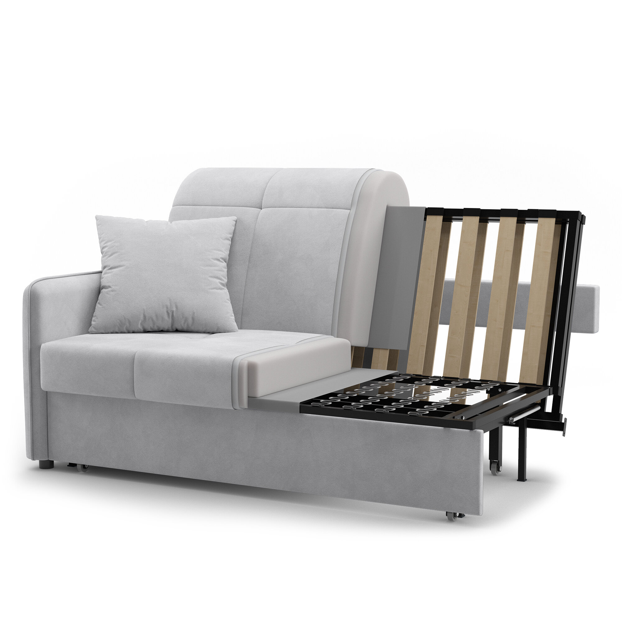 Диван-кровать раскладной прямой на металлокаркасе, аккордеон, ортопедический, 140х200, велюр светло-серый