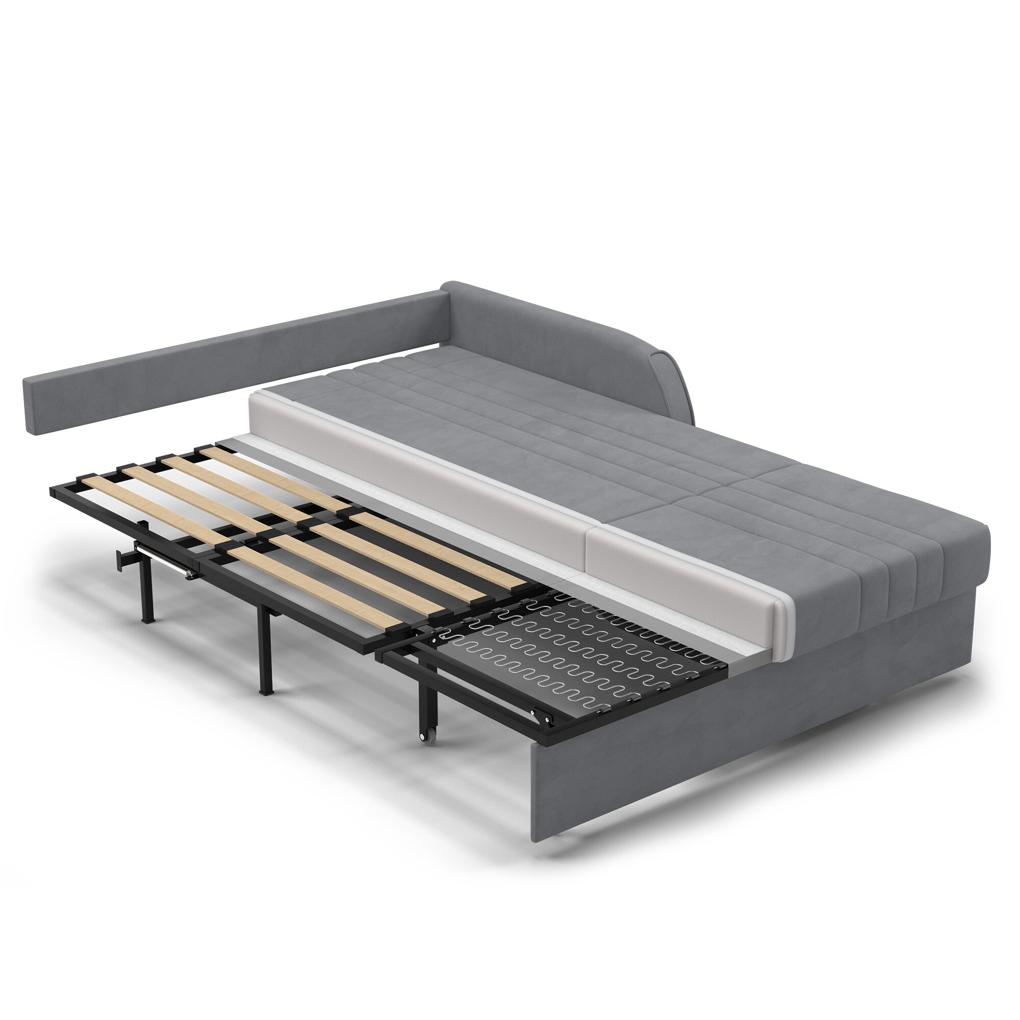 Диван-кровать раскладной Турин на металлокаркасе, Аккордеон, ортопедический, 160х203 спальное место, велюр темно-серый