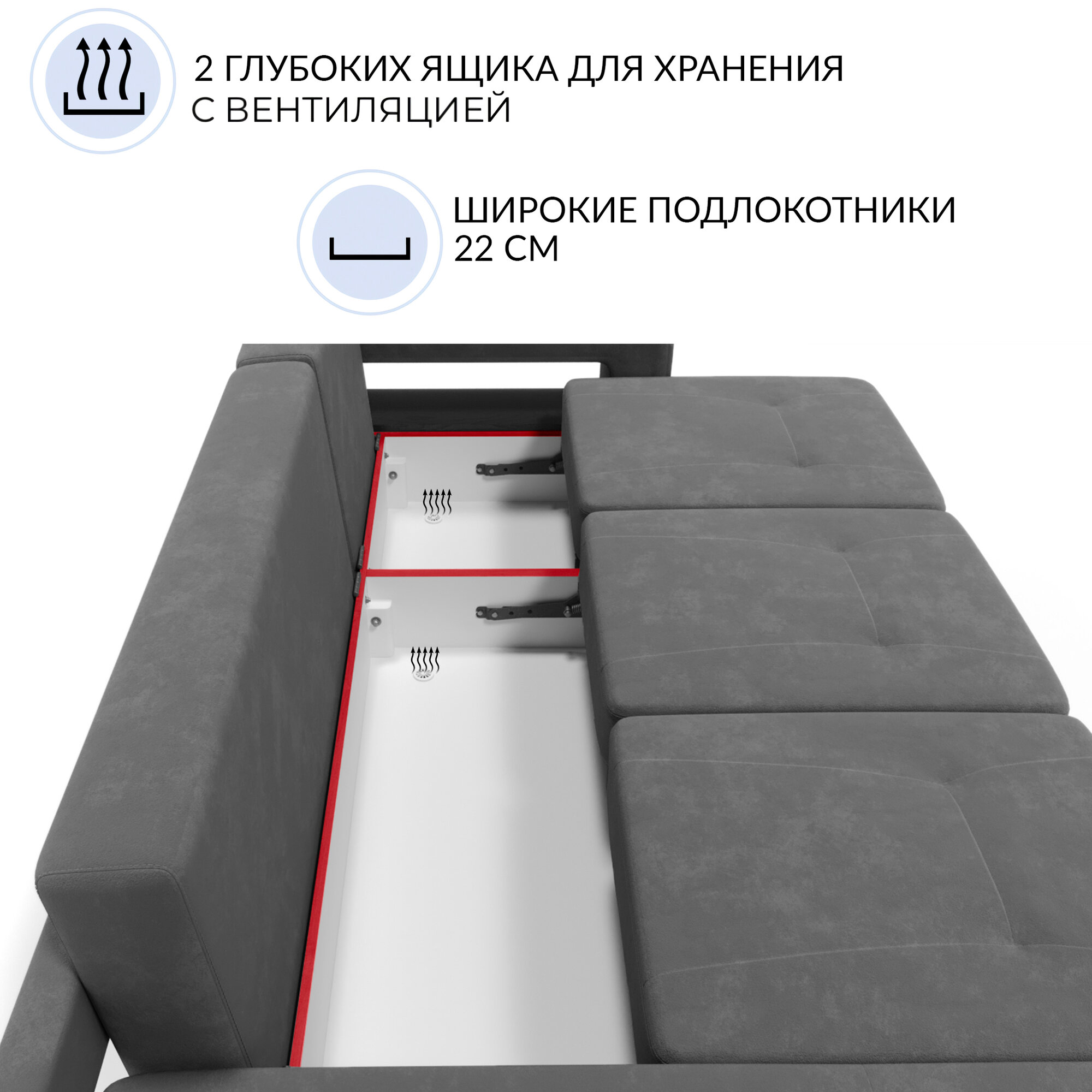 | Особенности | антивандальная обивка, модульный, пружинный блок, раскладная конструкция, с подлокотниками, съемные подушки, ящик для белья |