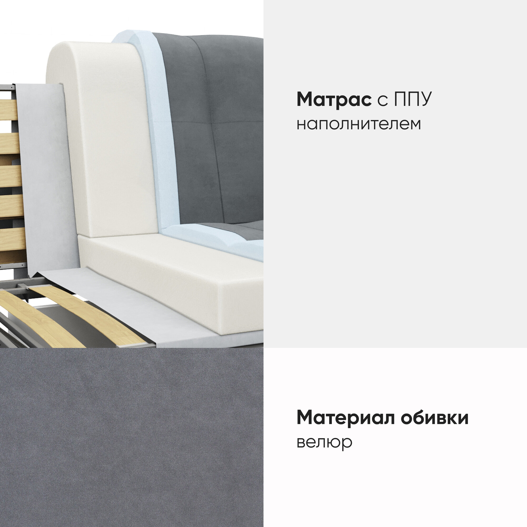 Диван-кровать с ящиком аккордеон на металлокаркасе темно-серый 190х108х96 Валенсия интересное: