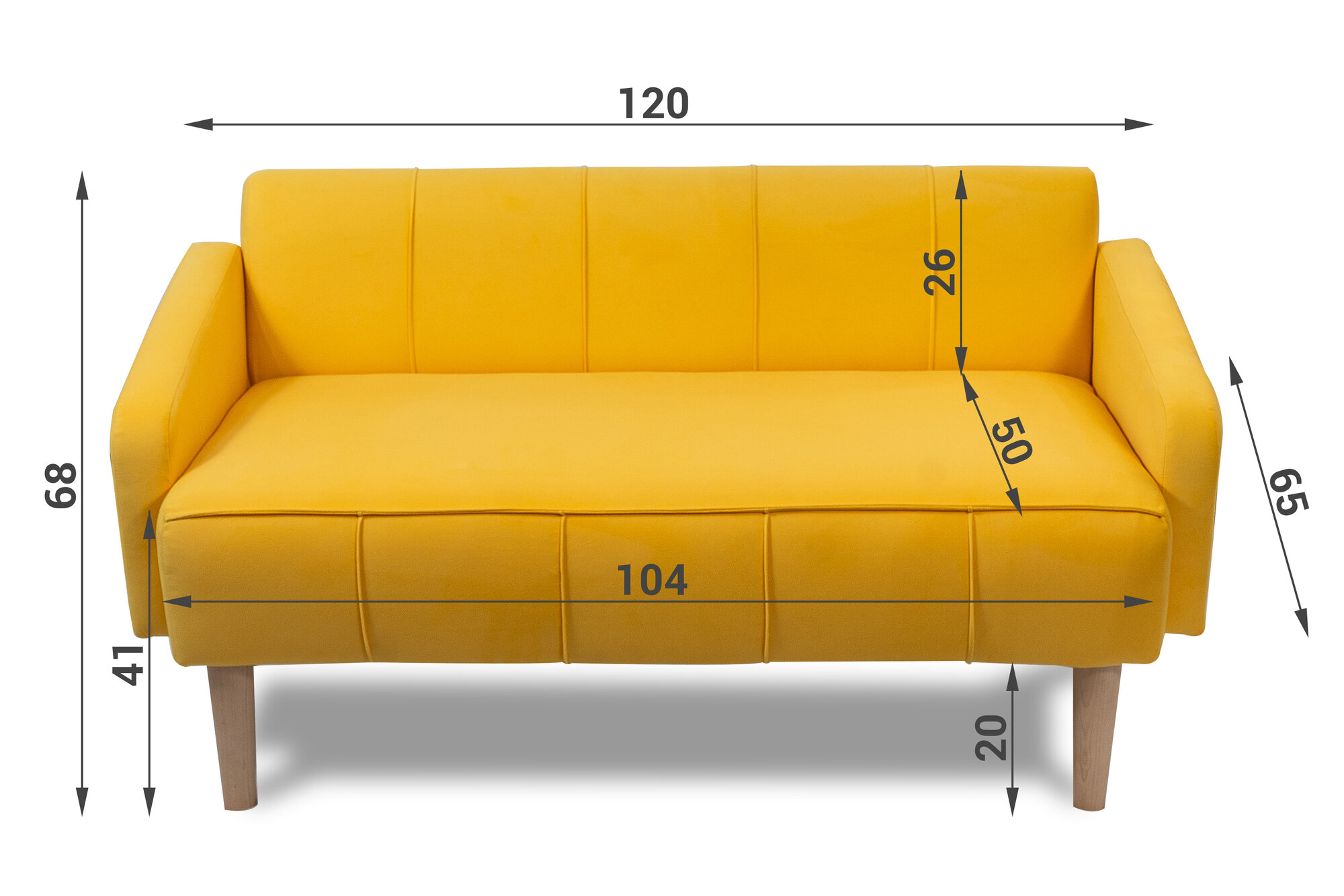 Диван "Афина", с подлокотниками, желтый, велюр, 68х65х120см