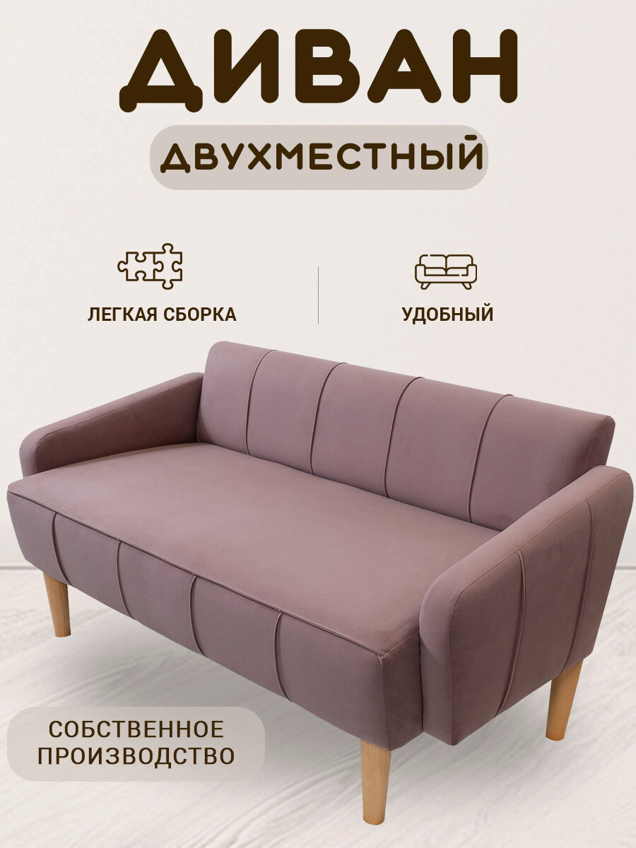 Диван "Афина", с подлокотниками, розовый, велюр, прямой, 120x65 см
