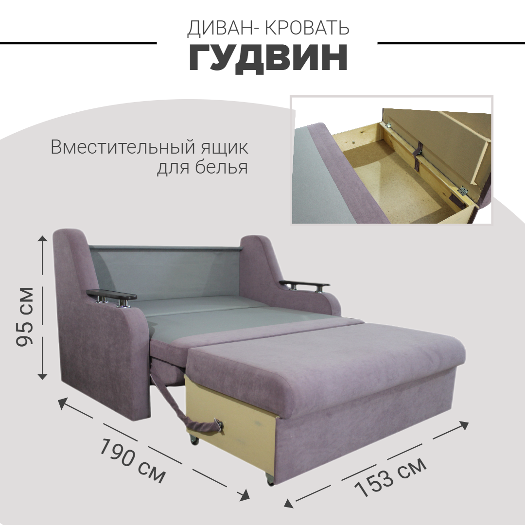 | Особенности | раскладная конструкция, с подлокотниками, ящик для белья |