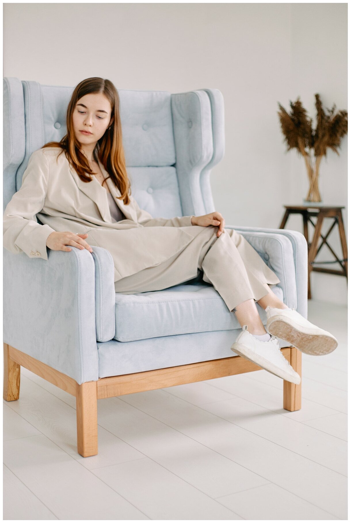 Дизайнерское кресло Soft Element Эликсир, высокая спинка, жаккард, синий с орнаментом, стиль скандинавский лофт, в гостиную
