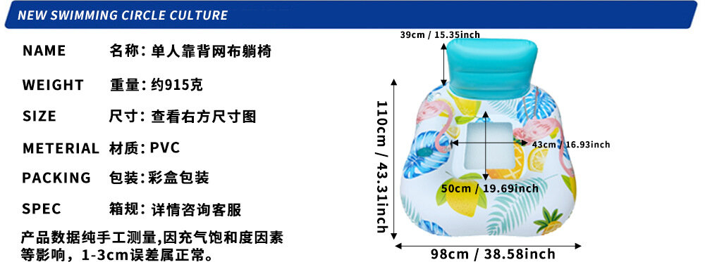 Надувной диван "Кленовый лист", для бассейна, с сетчатой спинкой