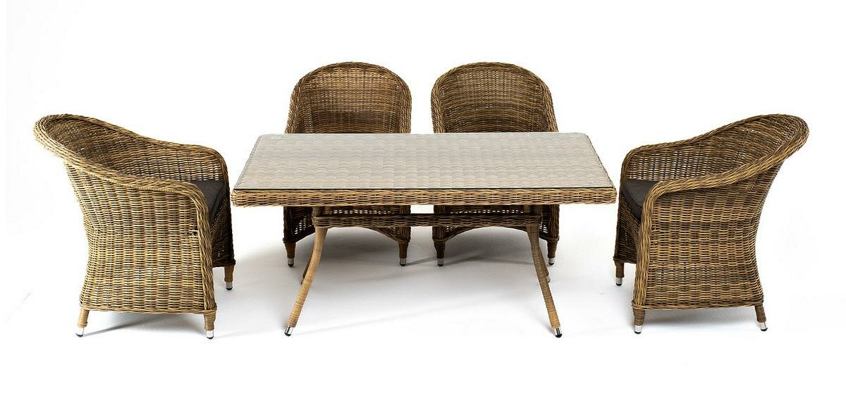 Обеденная группа 4SIS "Латте–140 R" обеденная группа плетеная, цвет соломенный арт. LCR4T-5-SET интересное: