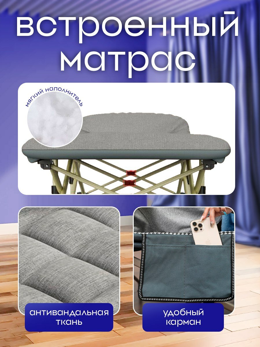 Раскладушка с матрасом взрослая туристическая mircamping регулируемая кровать для отдыха,для рыбалки туризма