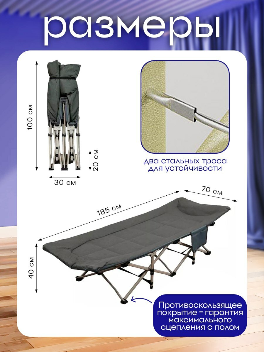 Раскладушка-трансформер (зонтик) с толстым матрасом,185х67х36, компактна в сложенном виде,Traveltop
