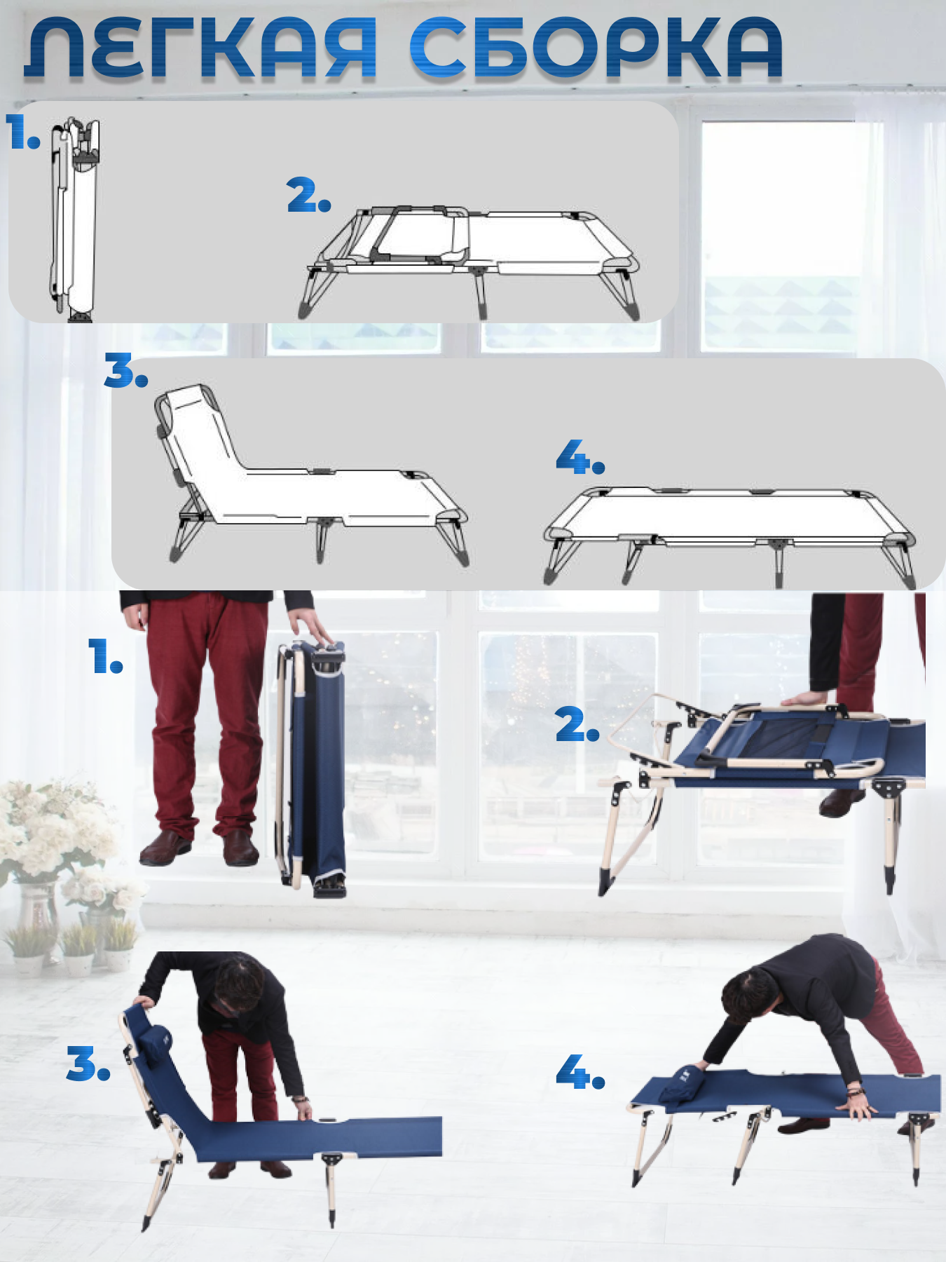 Раскладушка с матрасом взрослая туристическая mircamping регулируемая кровать для отдыха,для рыбалки туризма