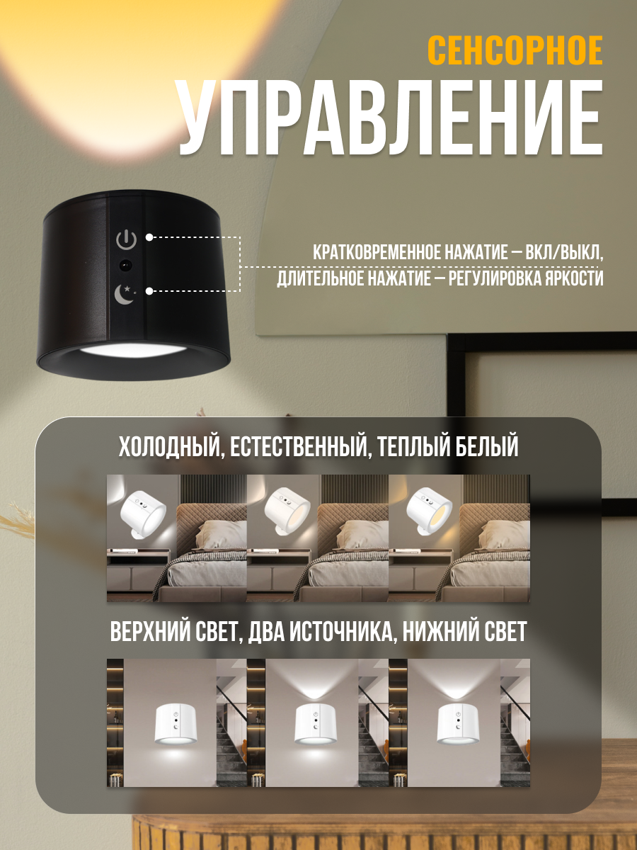Светильник настенный магнитный с аккумулятором, светодиодное бра IG&NAT интересное: