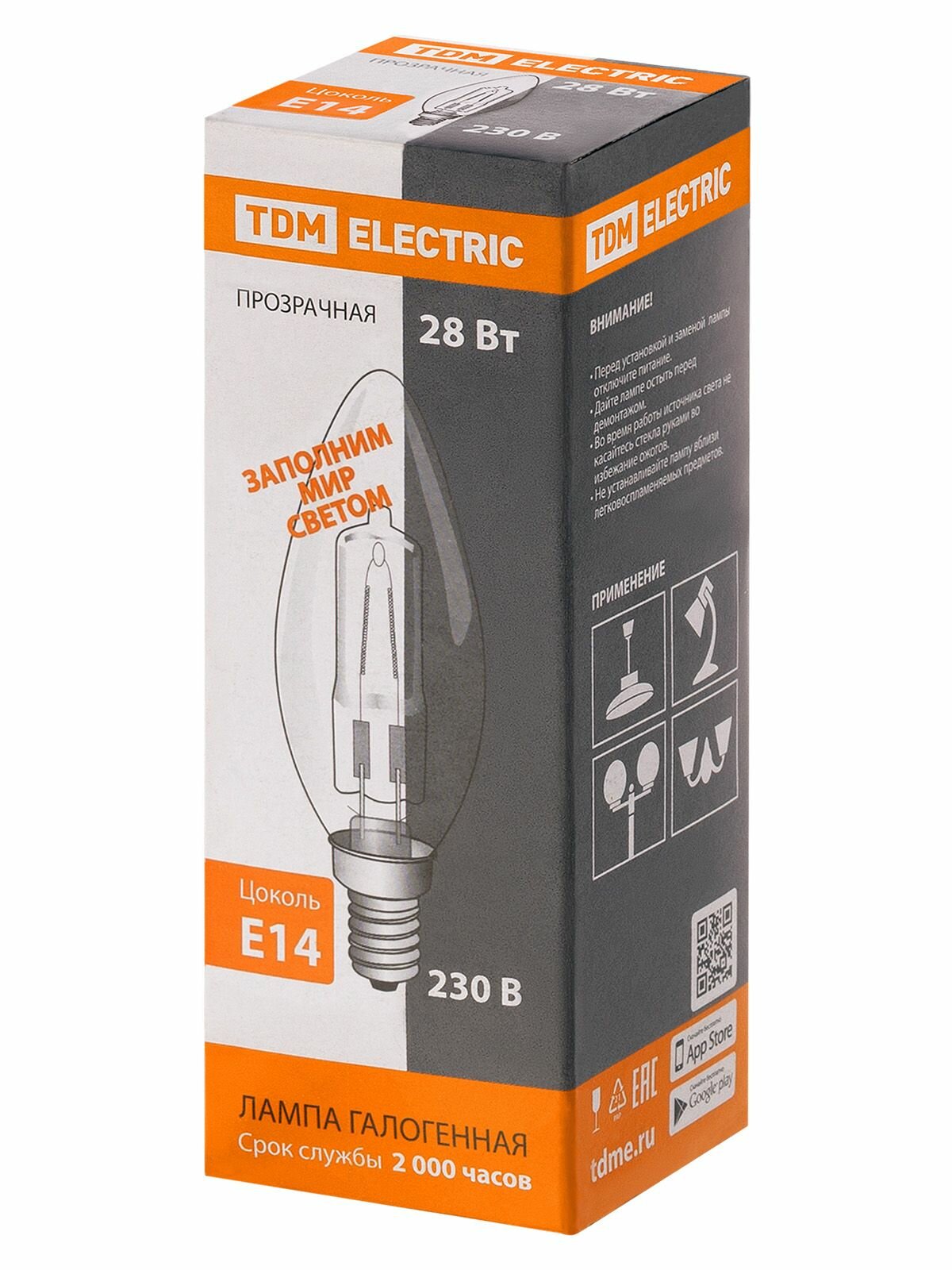 Лампа галогенная "Свеча" прозрачная 28 Вт-230 В-Е14 TDM интересное: