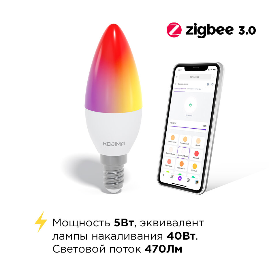 Умная светодиодная лампочка Е14 RGB Zigbee, Яндекс Алисой, Google Home, Smart Bulb 5W интересное: