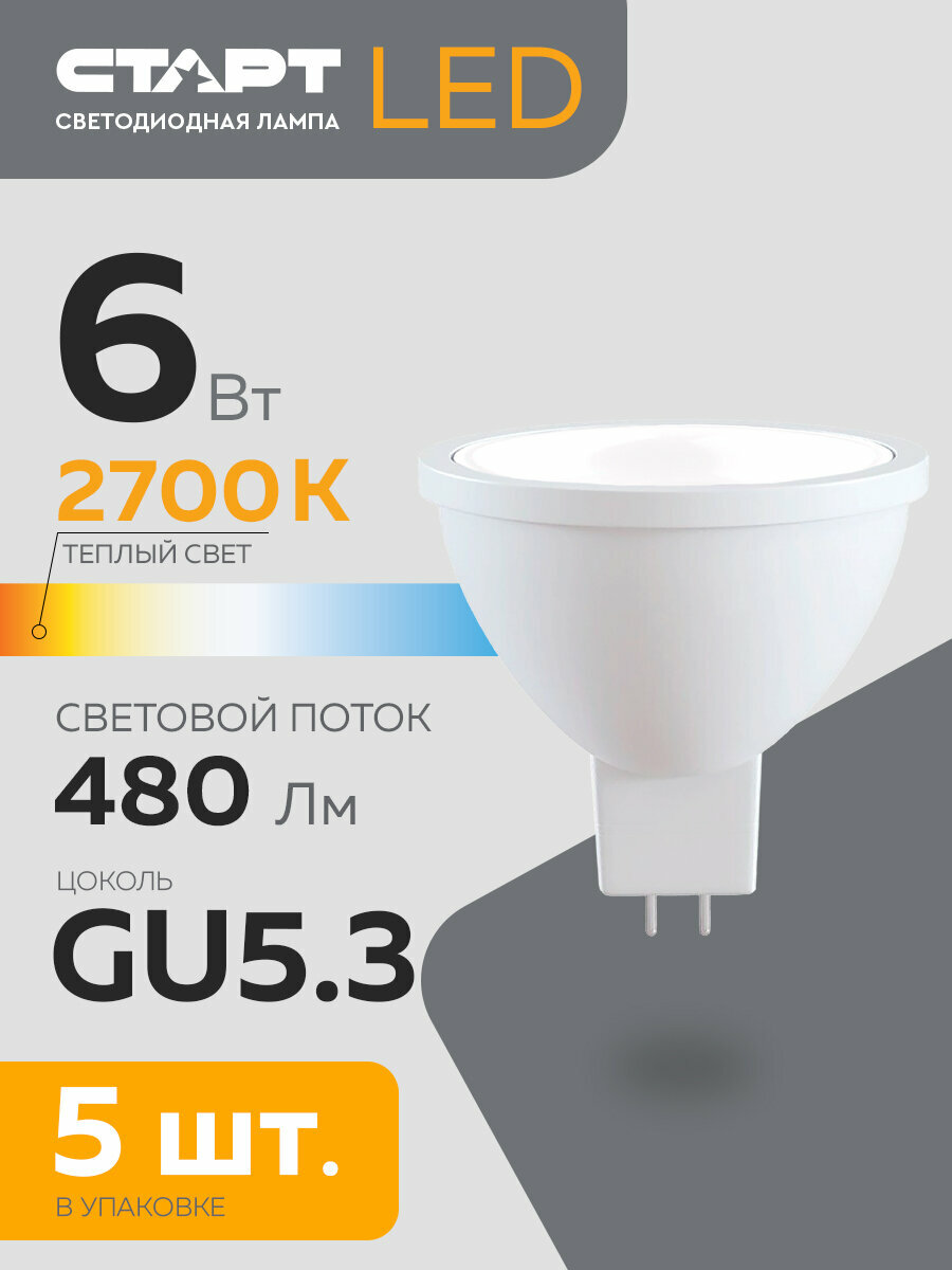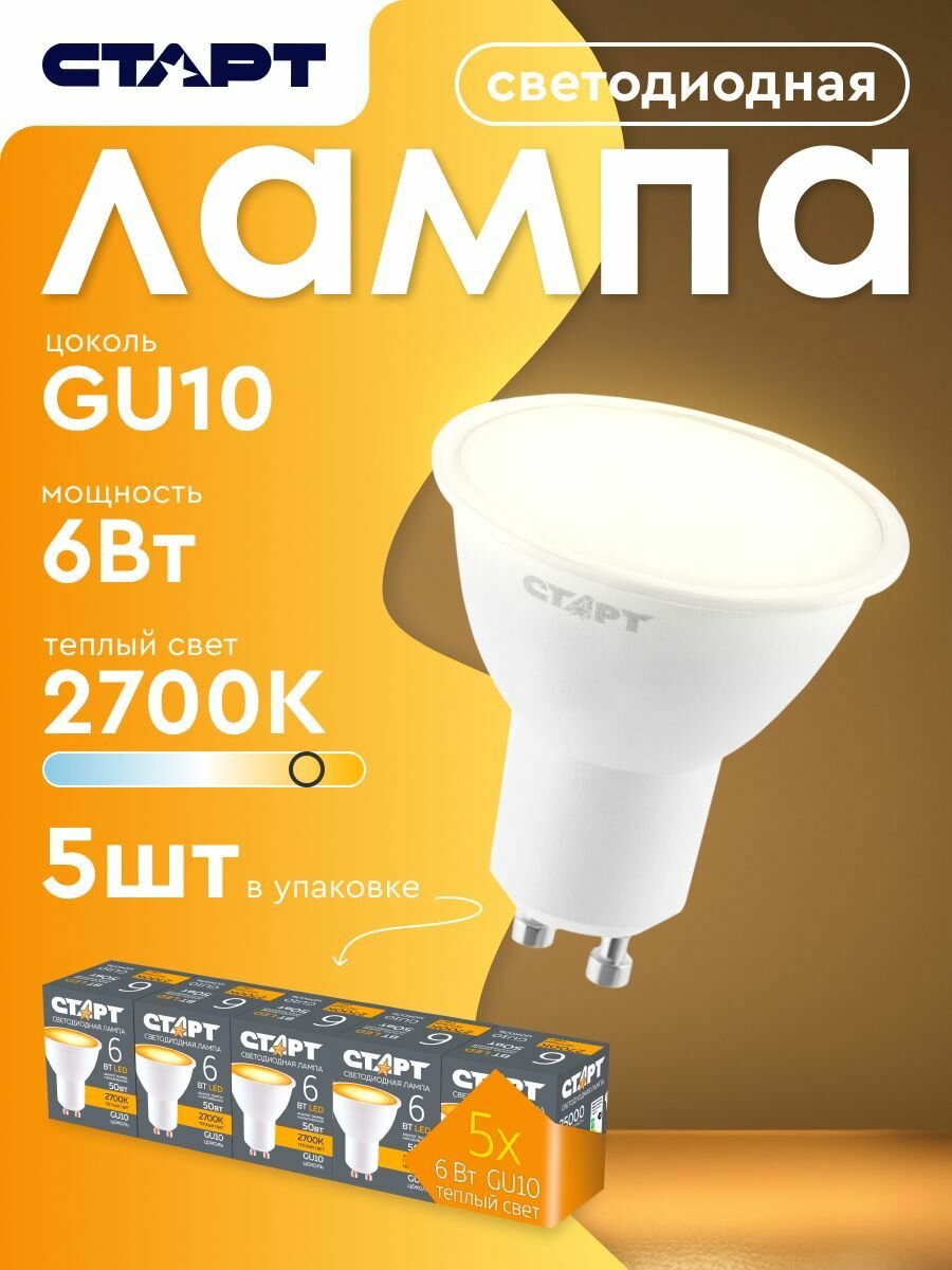 Набор светодиодных ламп старт LEDJCDRGU10 6W 2700K, 5 шт., теплый свет интересное: