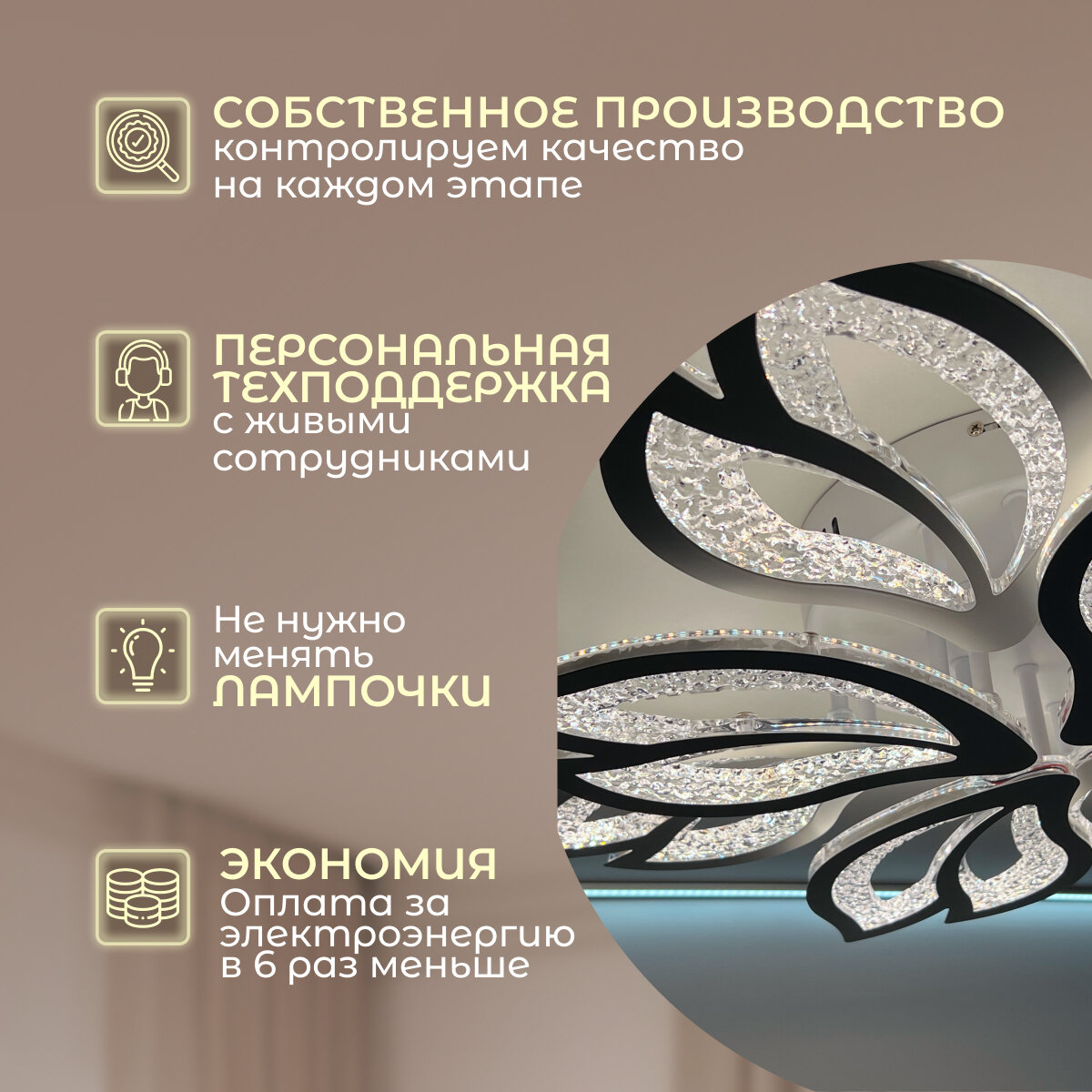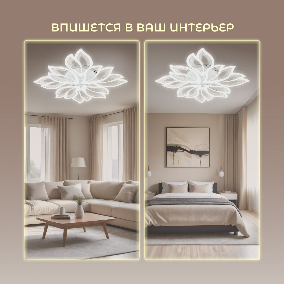 Люстра потолочная светодиодная с пультом Flower 176Вт белая интересное: