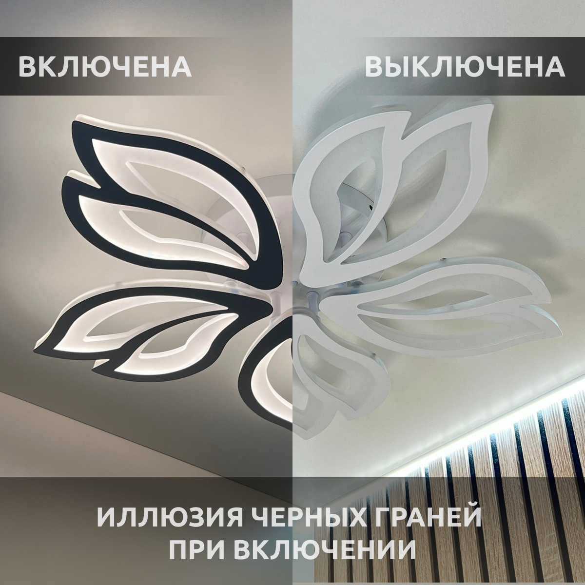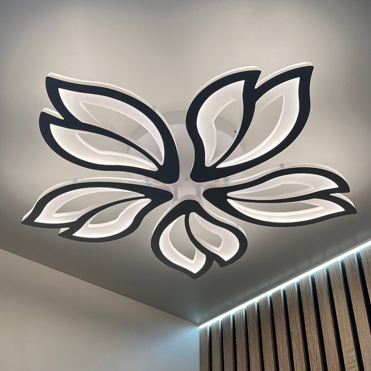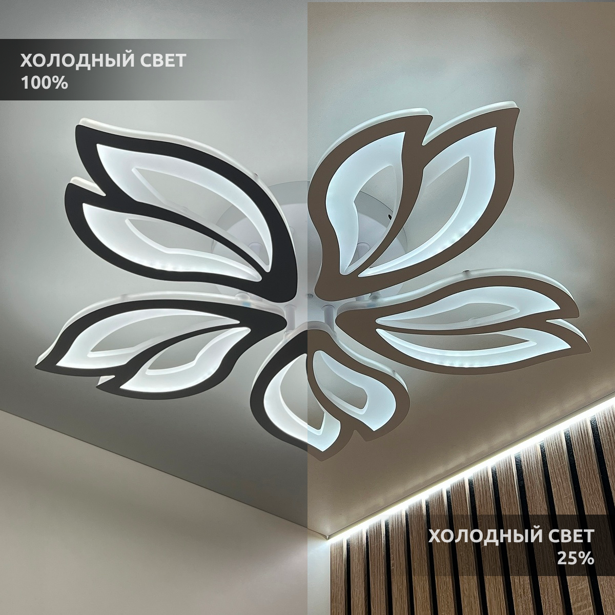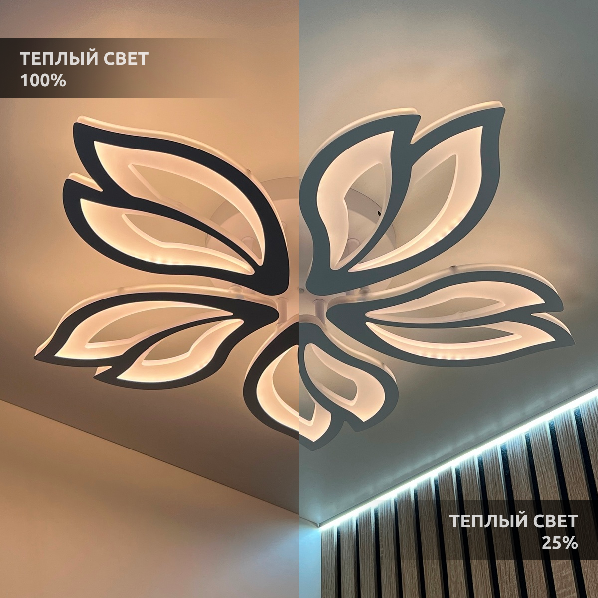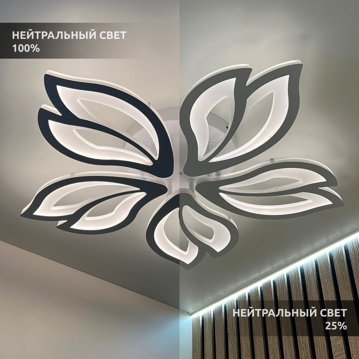 Люстра с пультом светодиодная потолочная 176W, 8 ламп, цветок, большая, белая, LEDCITY