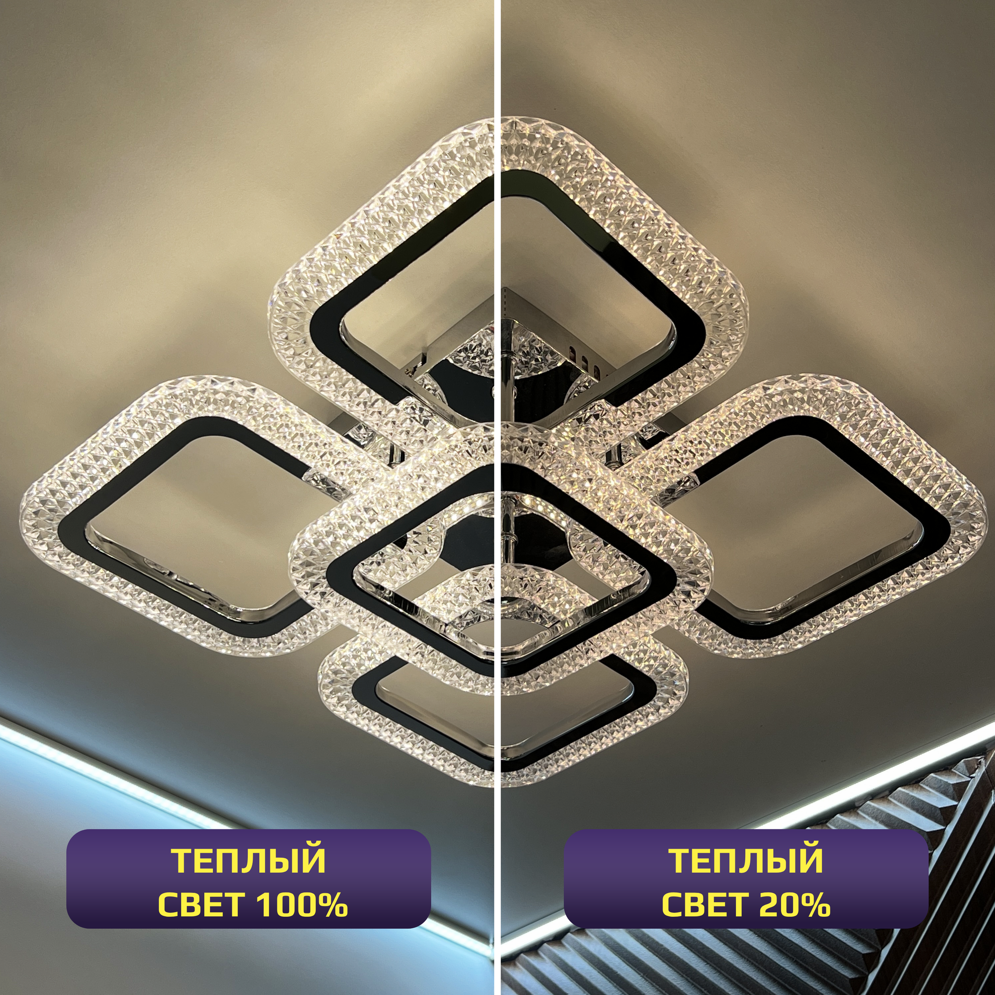 Люстра с пультом светодиодная потолочная 80W, 5 ламп, квадраты, хром, LEDCITY интересное: