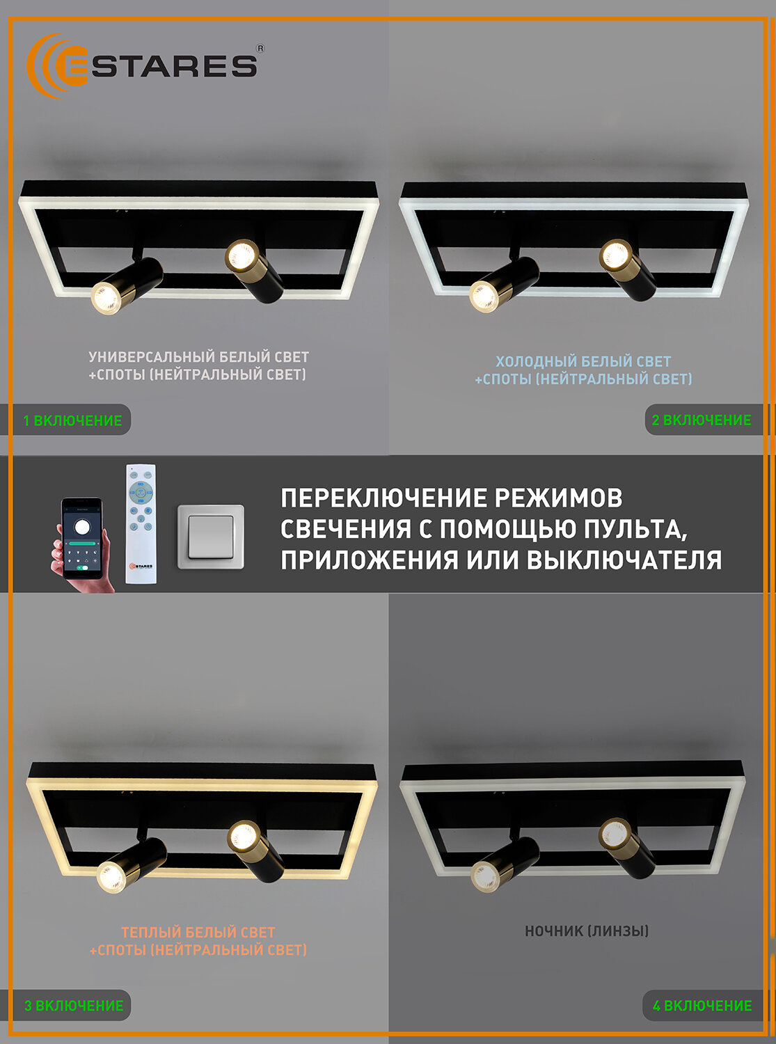 Управляемая LED-люстра Estares OMEGA с пультом и телефоном, 36 Вт интересное: