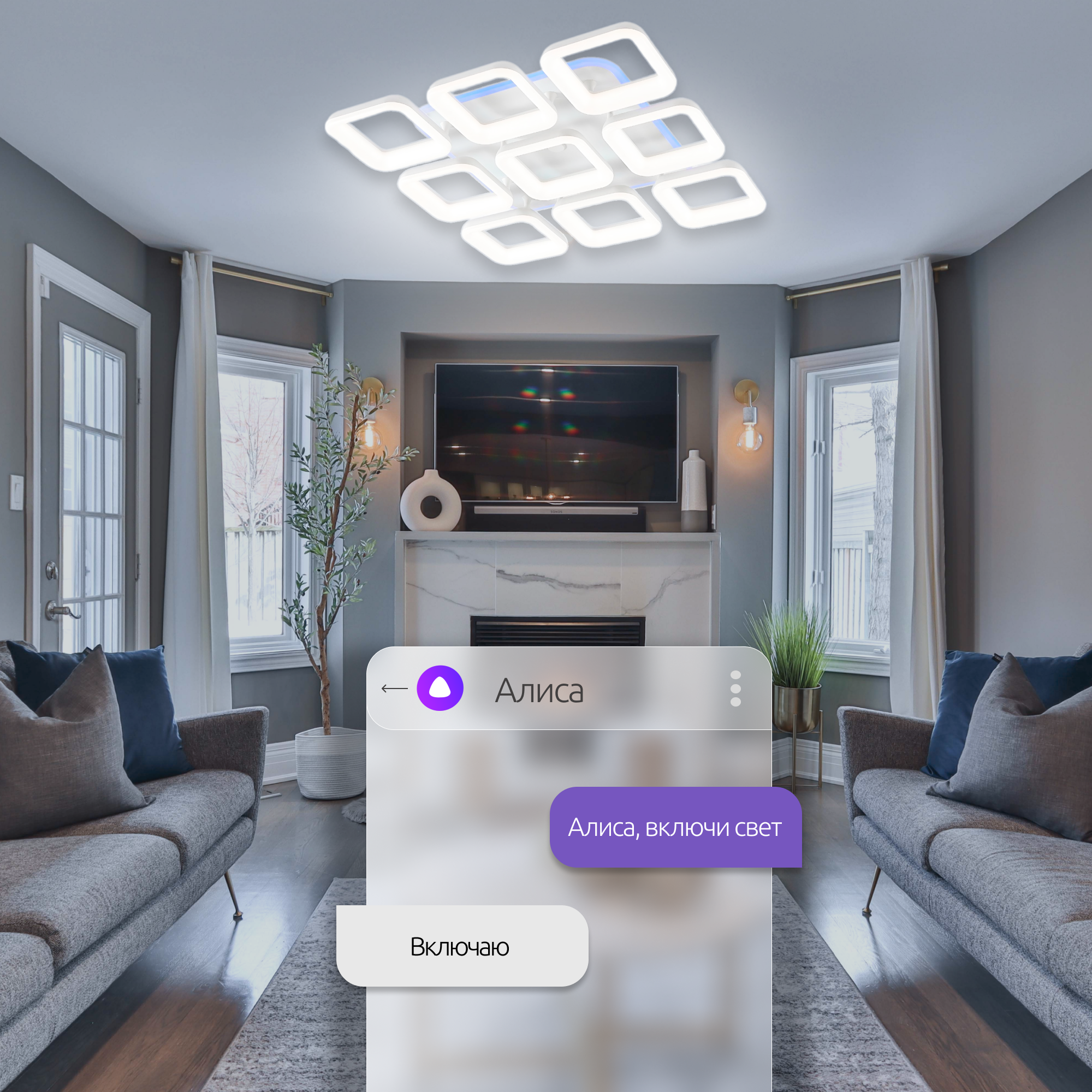 | Управление | голосовое управление / механическое / пульт дистанционного управления / регулировка яркости диммером / управление со смартфона |
