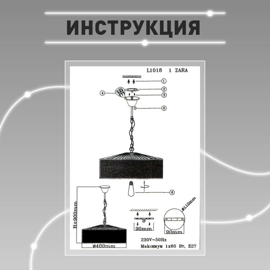 Светильник подвесной Lamplandia L1018-1 ZARA, Е27*1 макс 60Вт интересное: