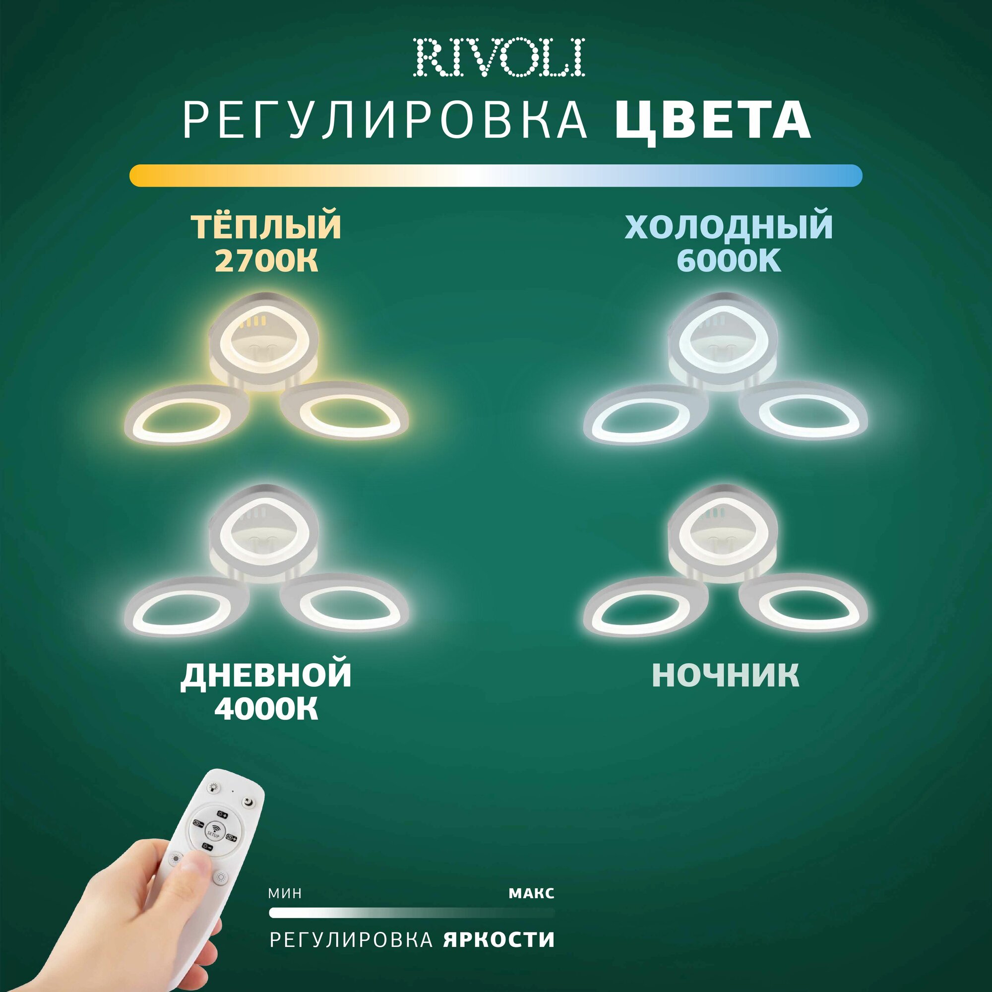 Светильник потолочный светодиодный Rivoli Kora 6048-107 с пультом ДУ модерн, 54 Вт, 2902K - 5968К интересное: