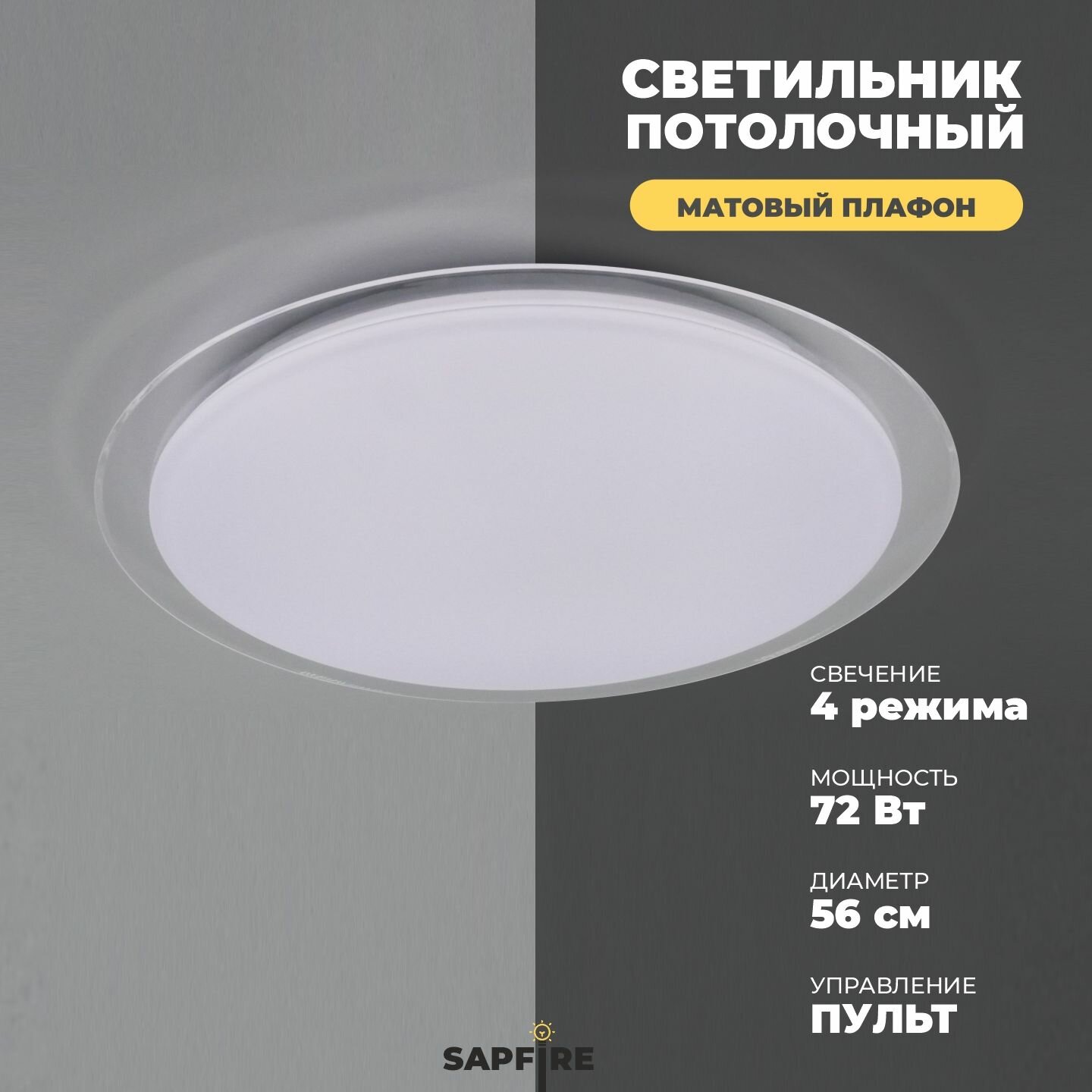 Люстра потолочная с пультом управления Sapfire, матовый плафон 72W интересное: