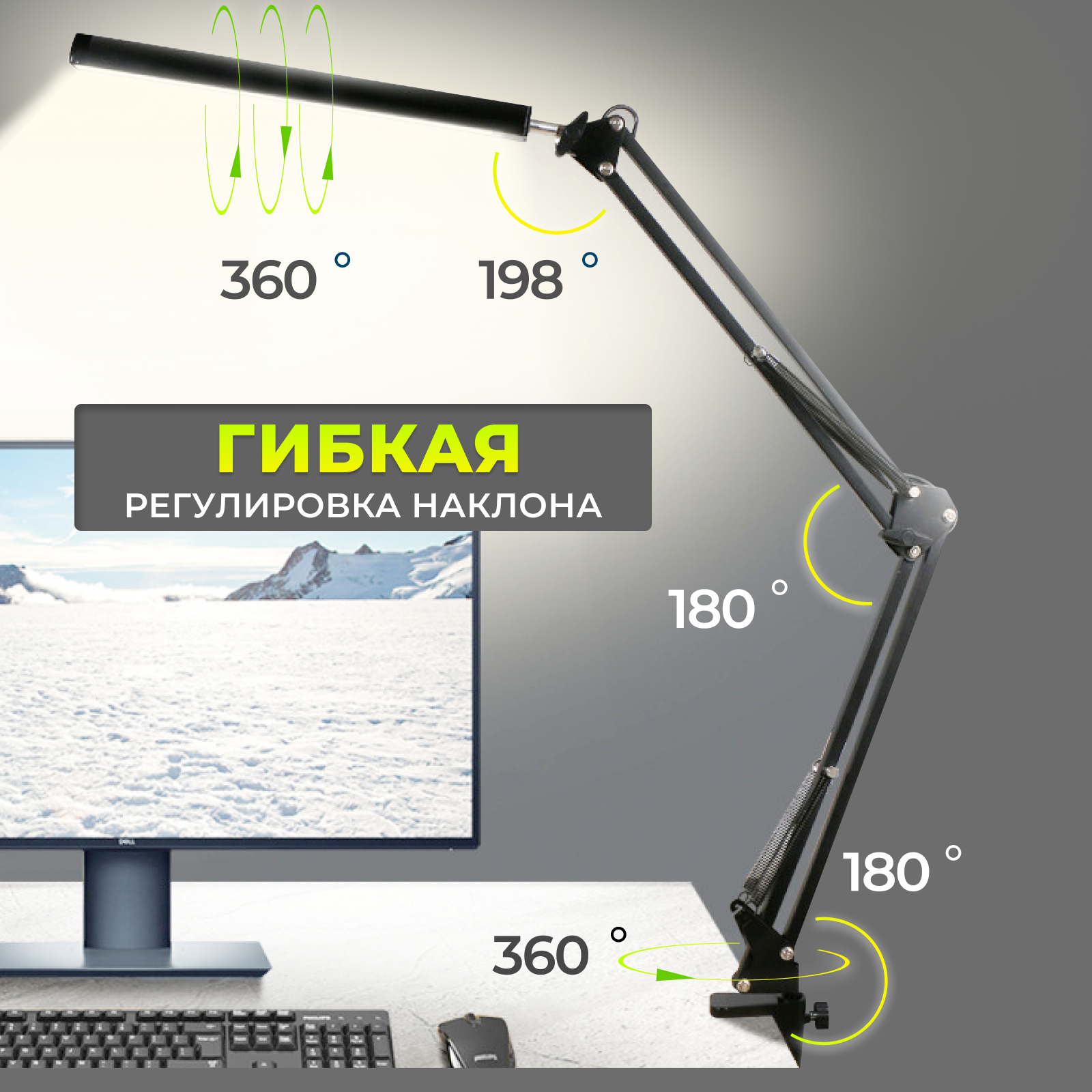 Лампа настольная для школьника и маникюра на струбцине черная интересное: