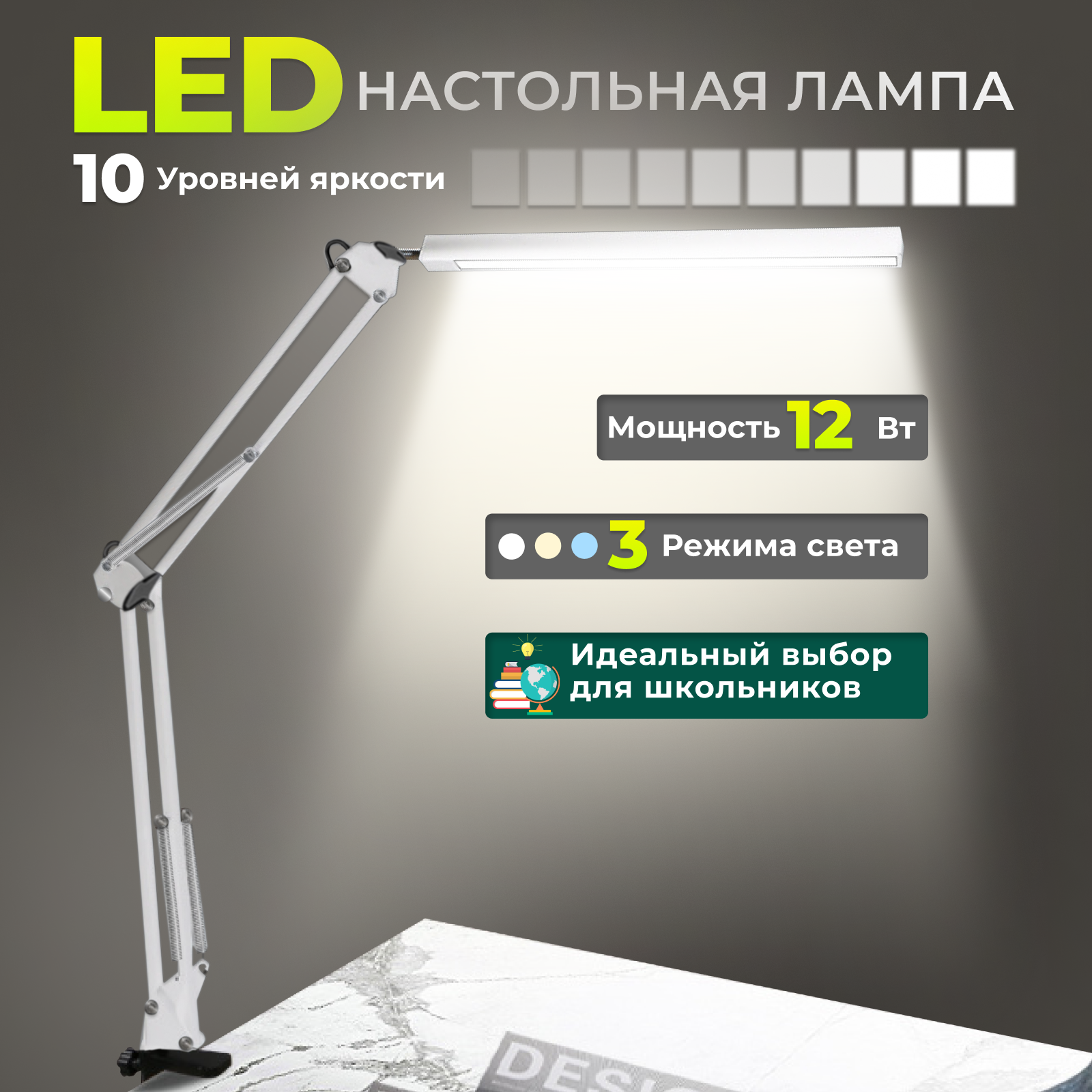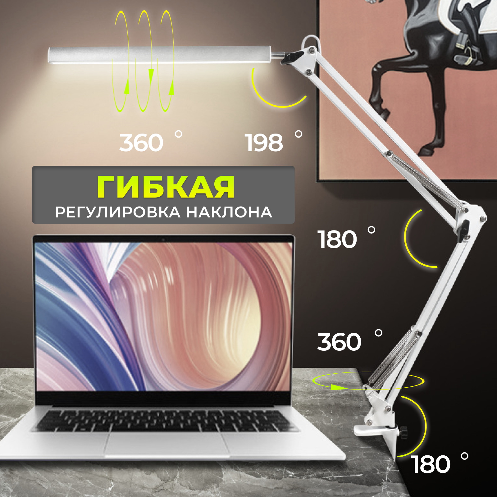 Лампа настольная для школьника и маникюра на струбцине белая интересное: