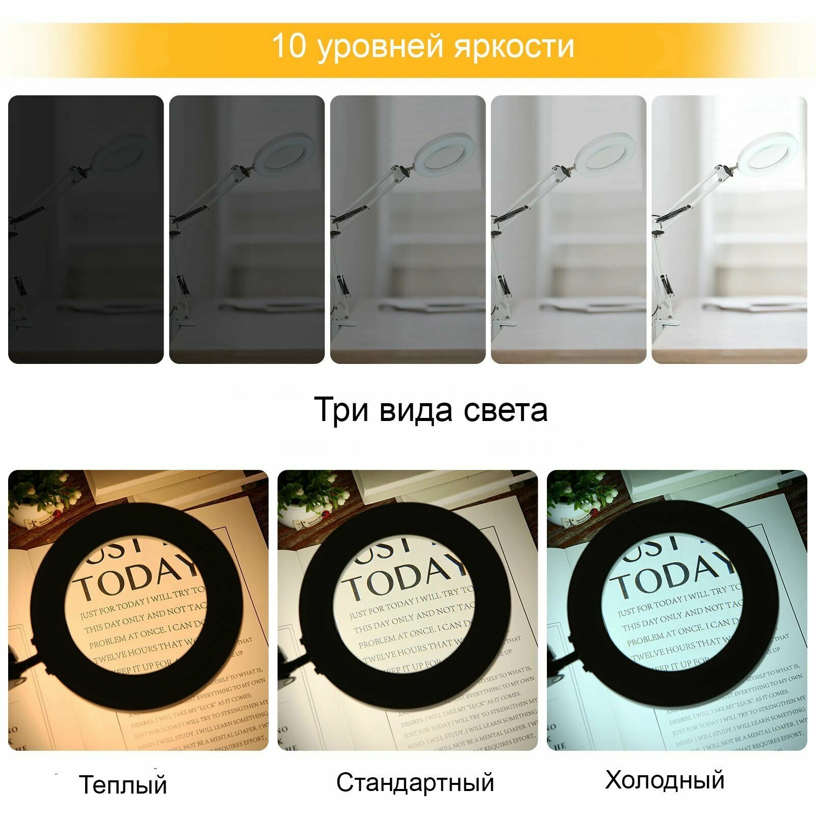 Лампа лупа настольная HaBe, на штативе, с подсветкой, LED (Белый)