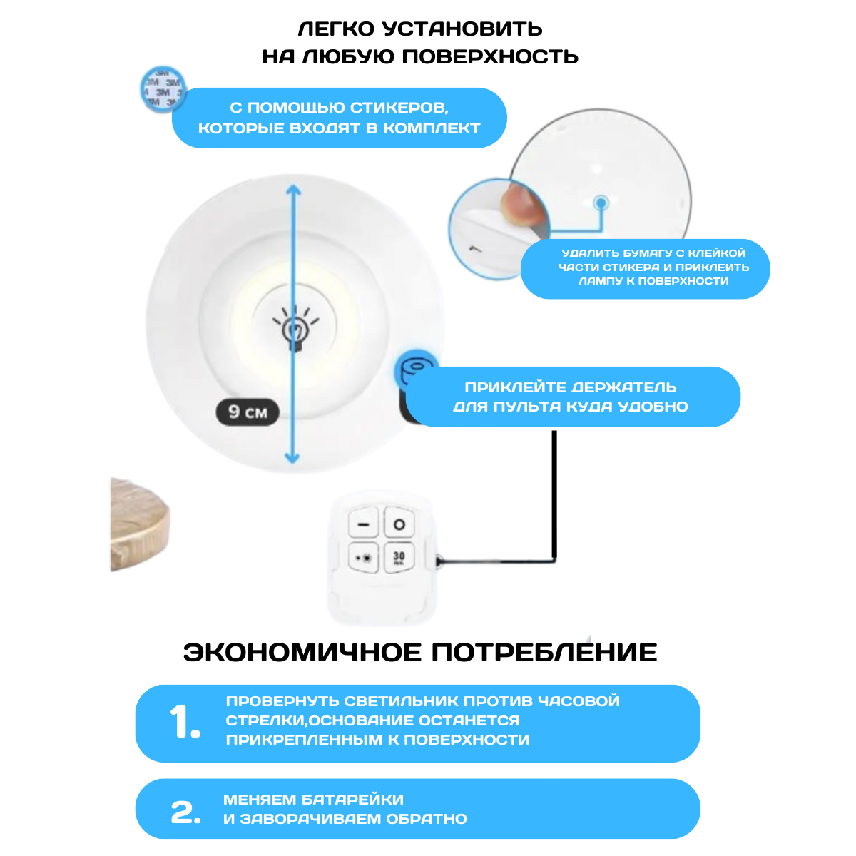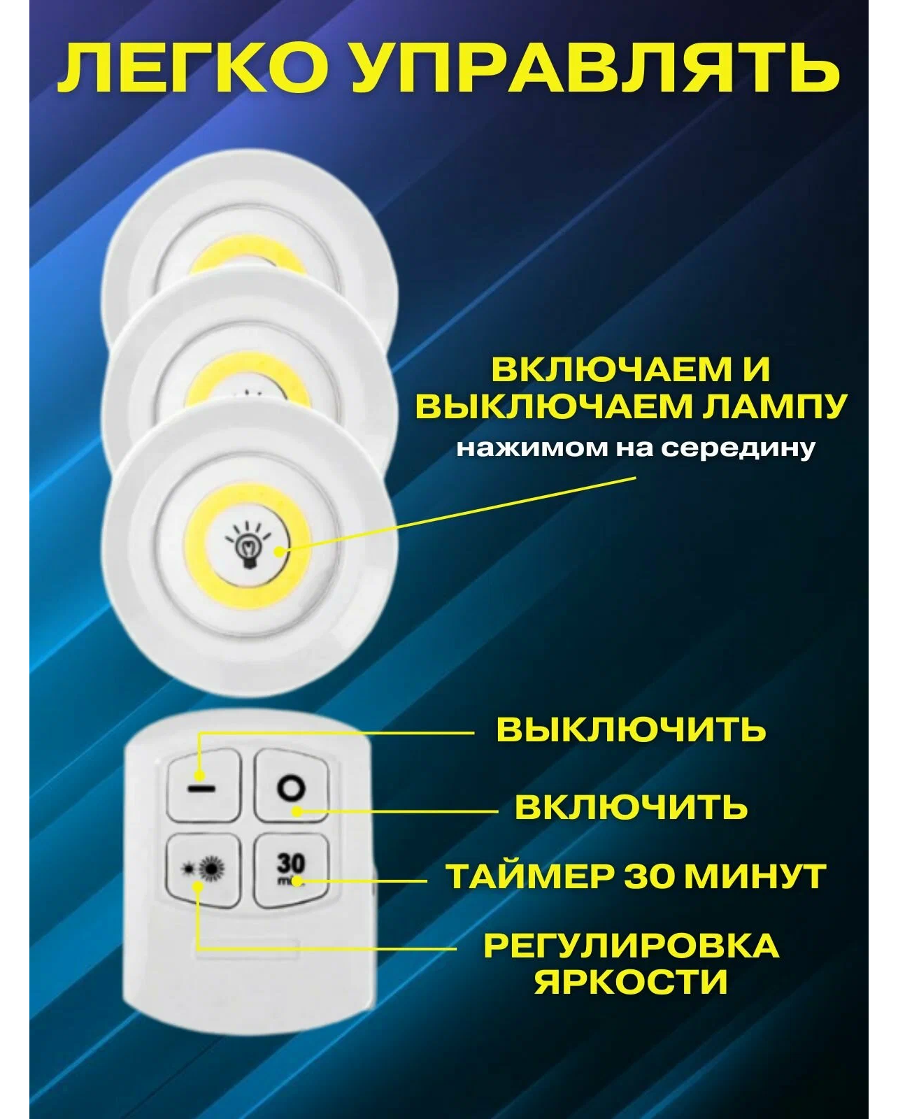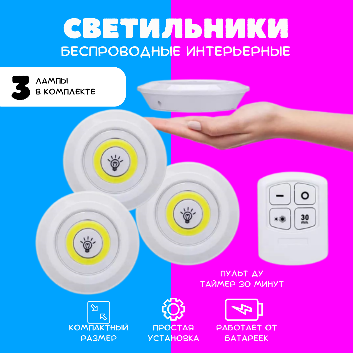 Светодиодный потолочный светильник для шкафа с дистанционным управлением и регулируемой яркостью, 3 шт./ночник на батарейках интересное: