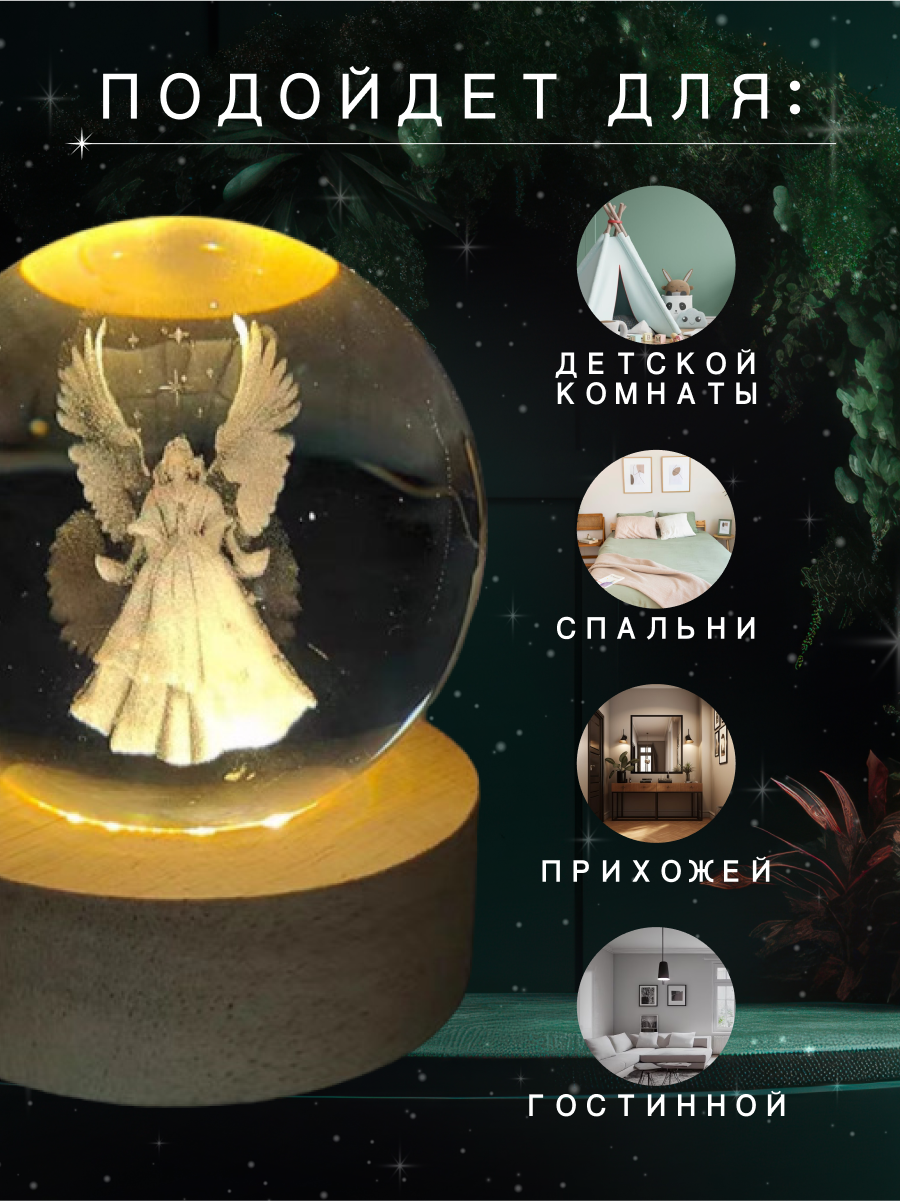Ночник детский светодиодный стеклянный шар светильник ангел интересное: