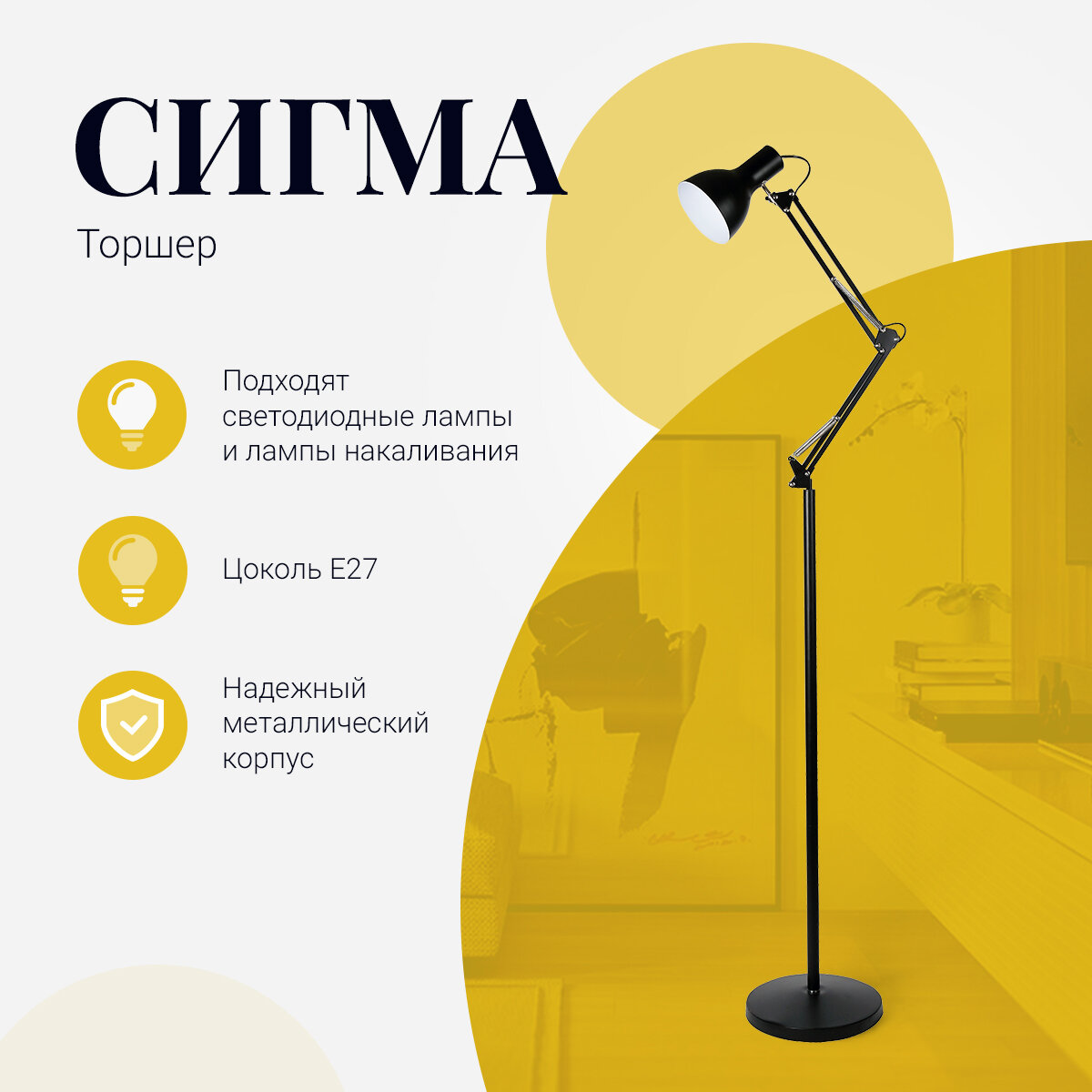Светильник напольный в стиле лофт Трансвит Сигма на пантографе, лампа торшер с регулировкой, с выключателем, цоколь e27, 40 Вт, черный интересное:
