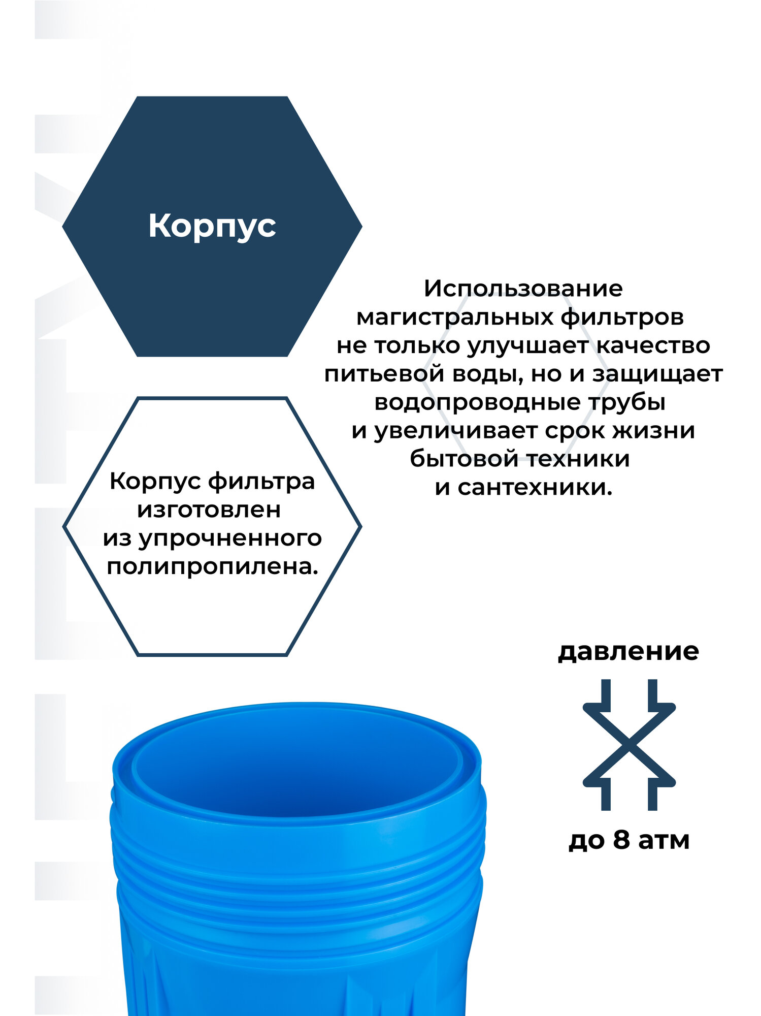 Корпус (колба) магистрального фильтра Нептун BP-45, размер 20 BB, резьба 1" + ключ и крепление, стандарт 20BB, корпус фильтра, колбы фильтра интересное: