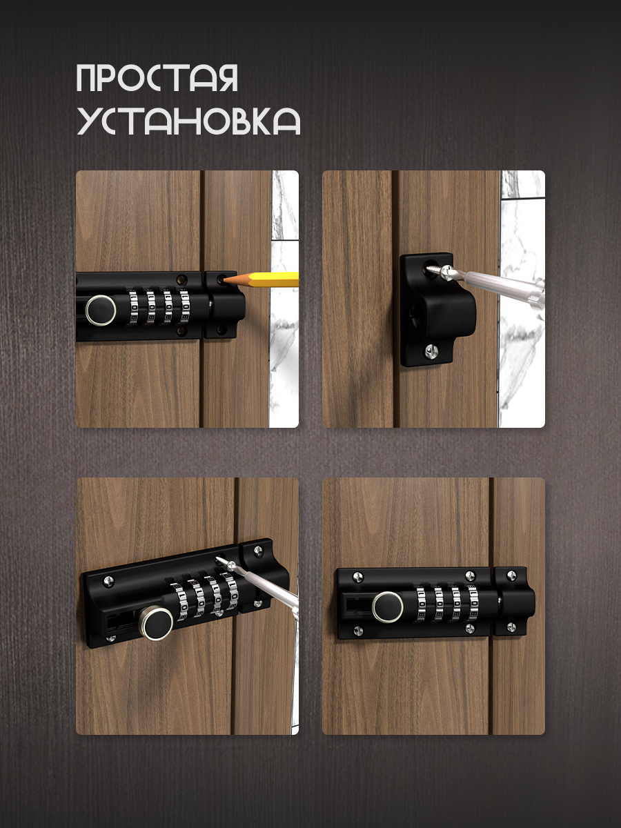 Шпингалет на дверь / щеколда с кодовым замком черный интересное: