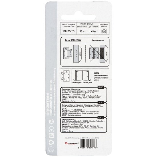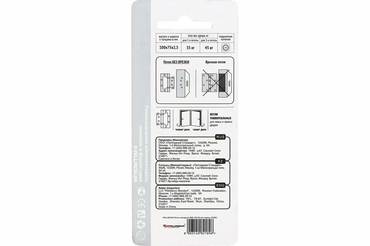 Петля дверная Palladium Openclose System Palladium накладная 2BB-100 SN интересное: