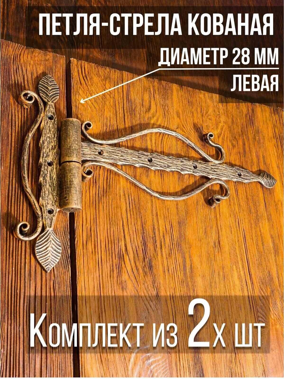 Петля-стрела левая (2 шт.) диаметр 28 мм цвет: медный/для деревянных и металлических дверей/шарнир для ворот и калиток