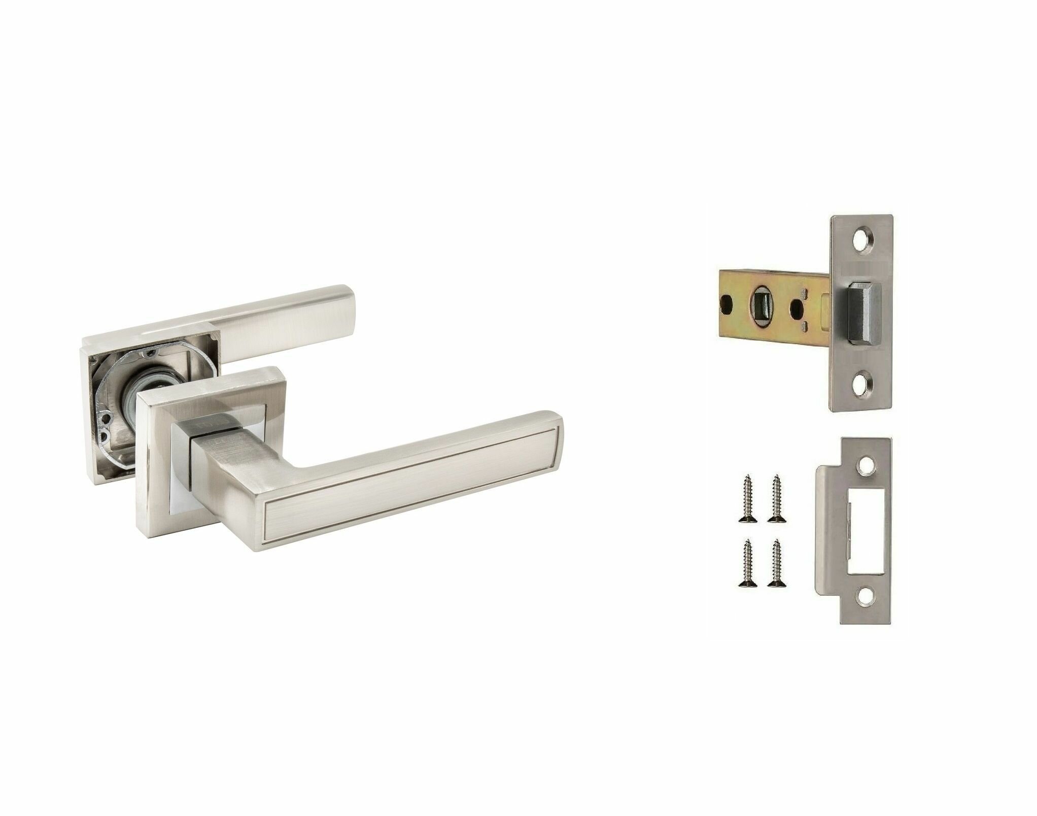 | Комплектация | Дверные ручки - 2 шт, квадратный стержень 8х8х100 мм - 1 шт, стяжной винт - 2 шт, стопорный винт - 2 шт, шестигранный ключ - 1 шт, саморезы - 6 шт. Защелка - 1 шт, ответная планка - 1 шт, крепежный набор. |