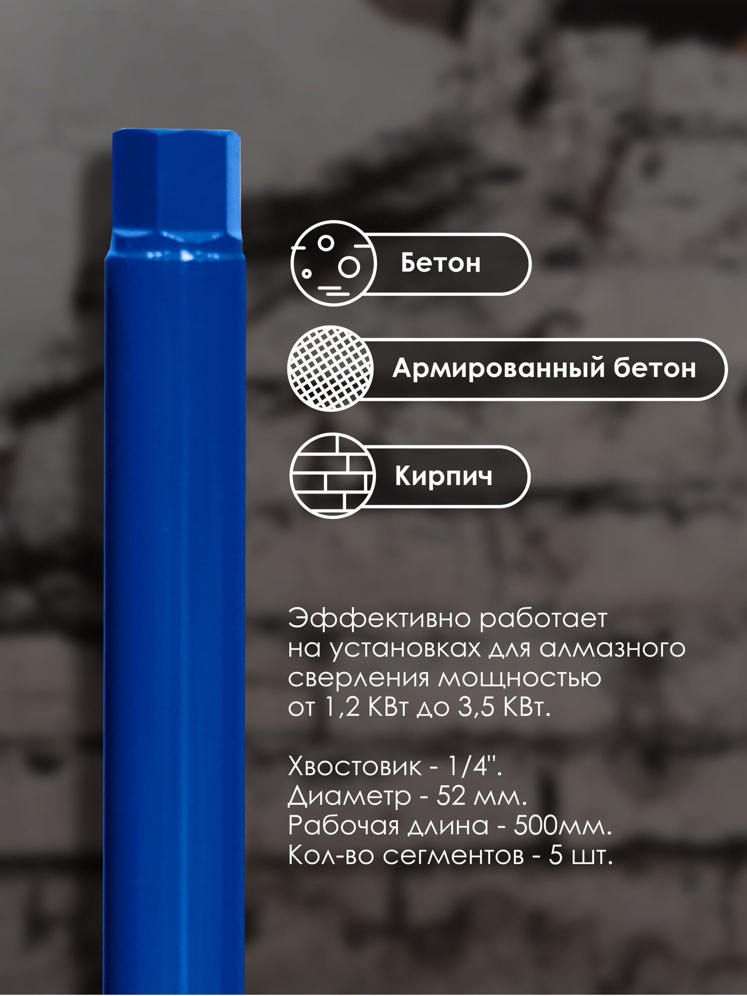 | Материал обработки | бетон / железобетон / кирпич |