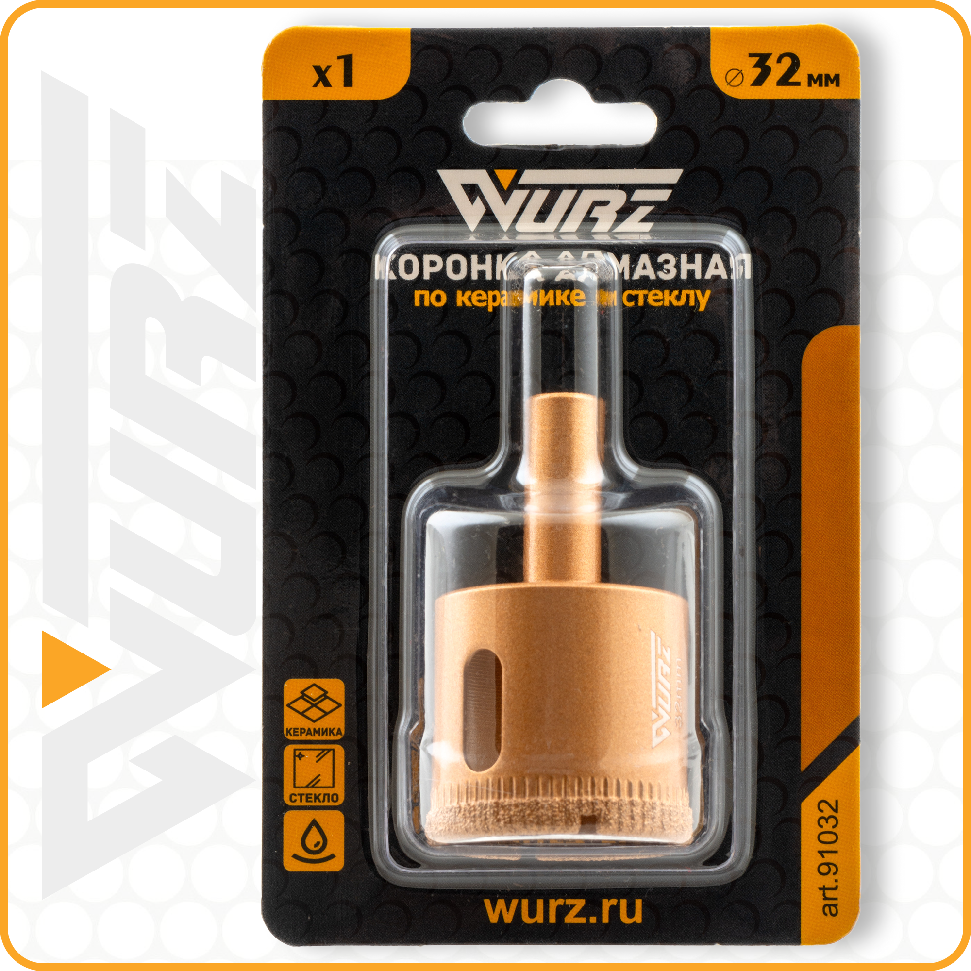 Купить Коронка алмазная 32мм по керамике и стеклу WURZ 91032