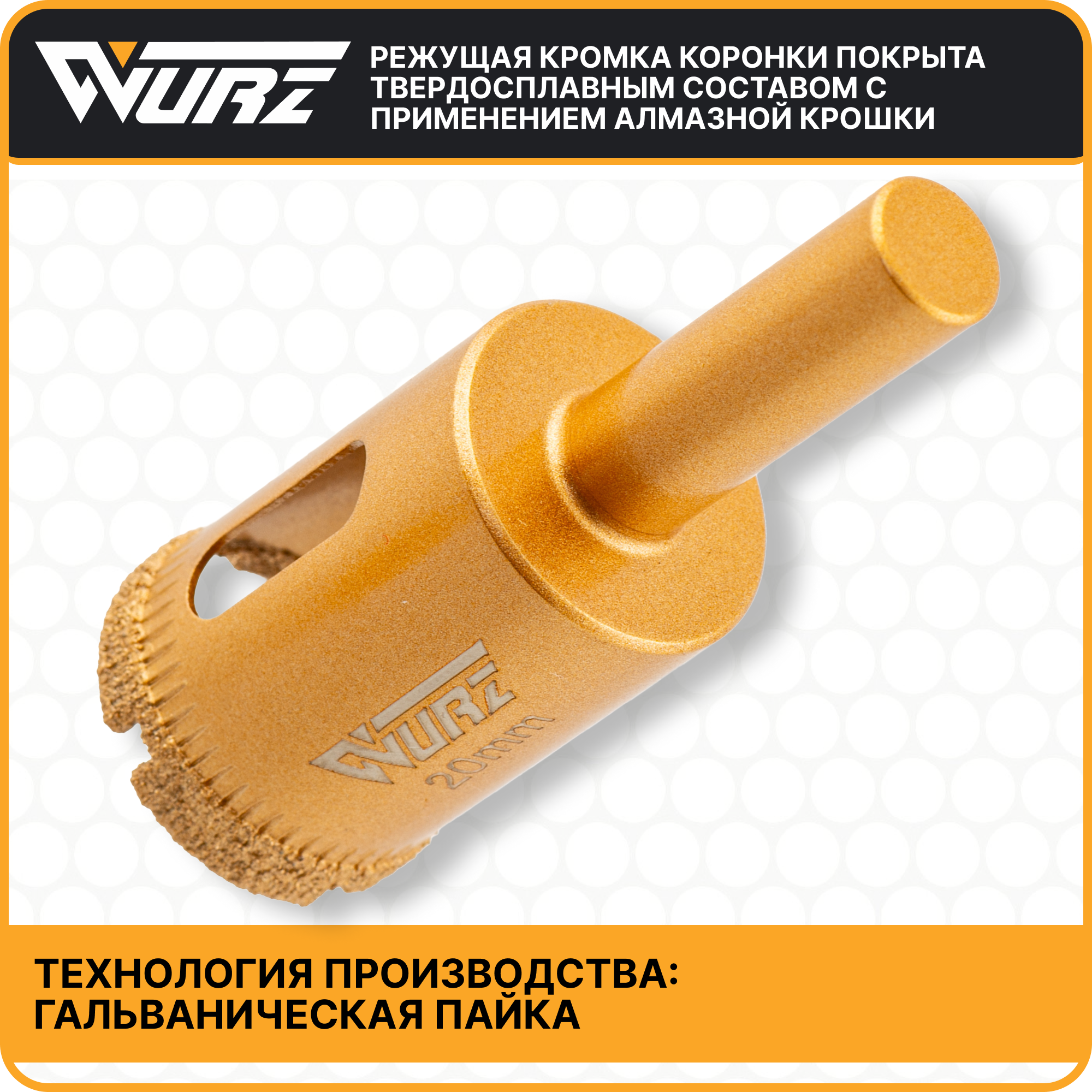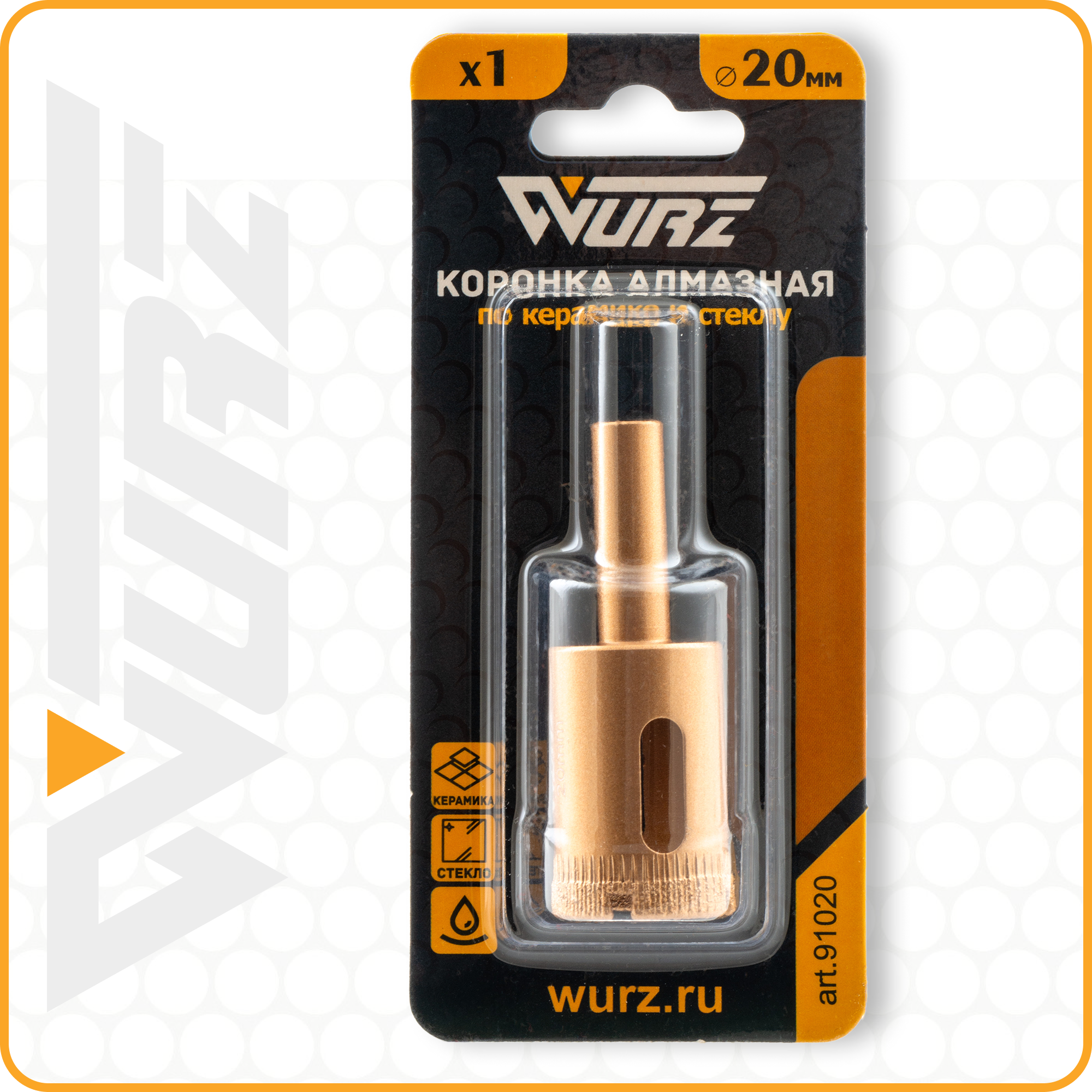 Купить Коронка алмазная 20мм по керамике и стеклу WURZ 91020