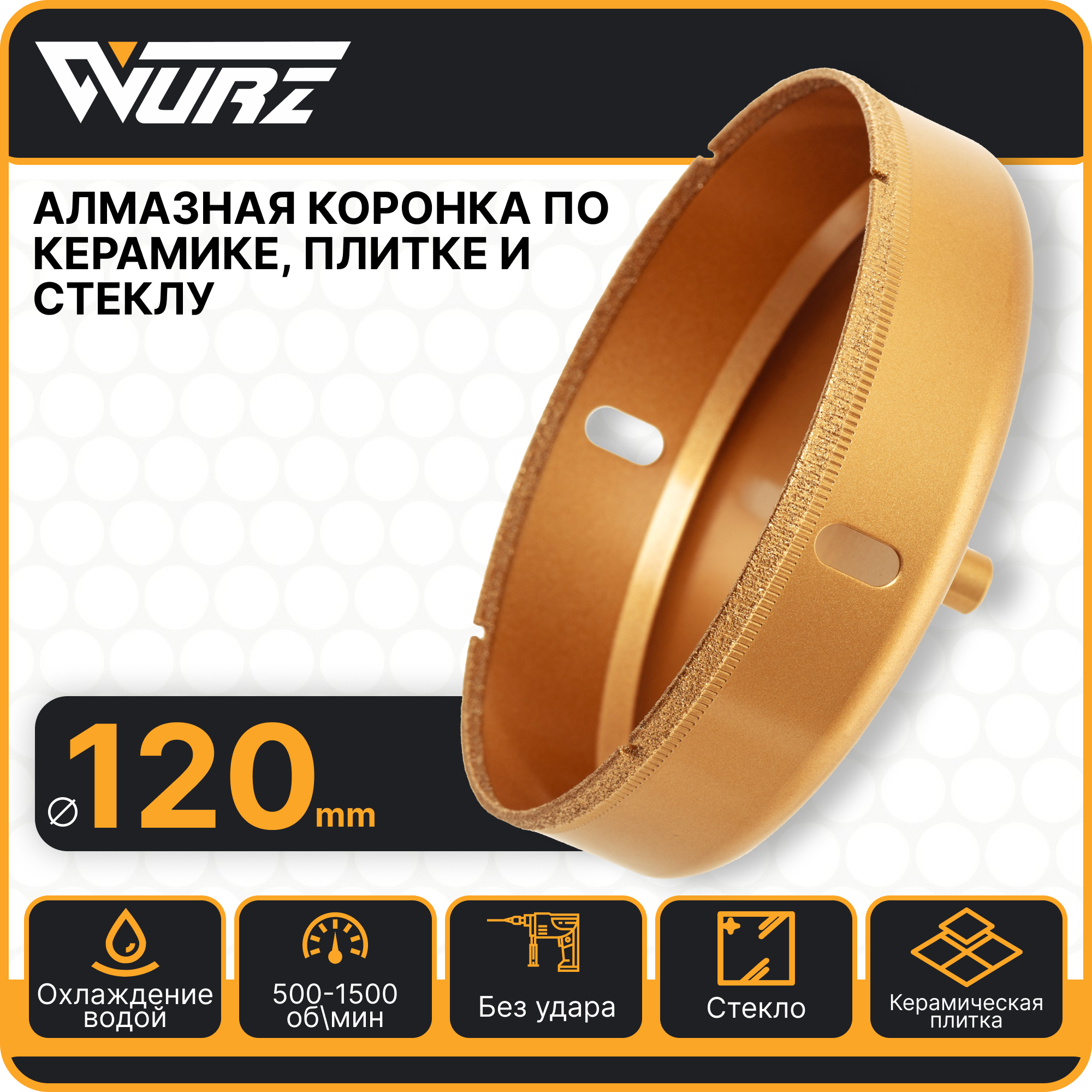 Купить Коронка алмазная 120мм по керамике и стеклу WURZ 91120