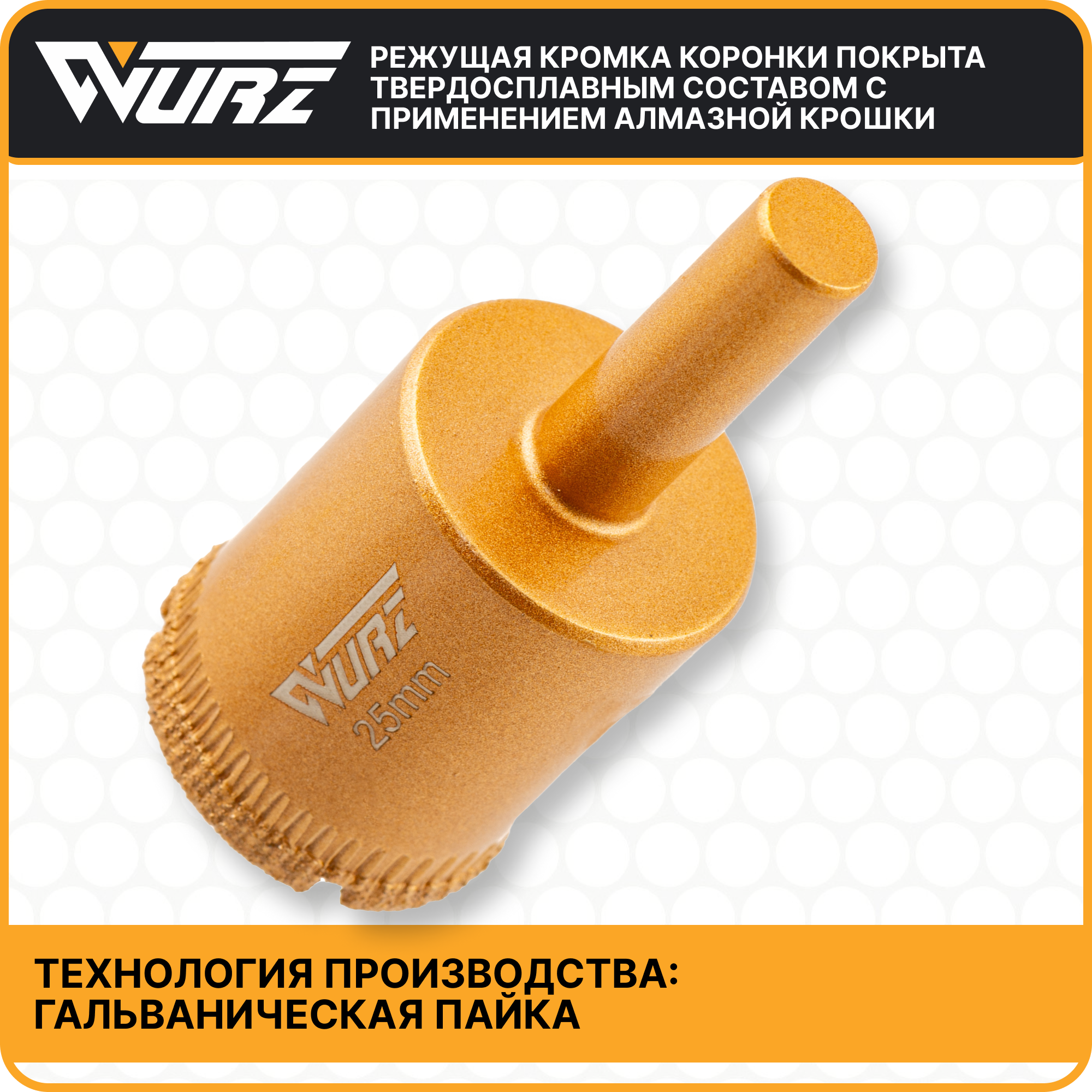 Купить Коронка алмазная 25мм по керамике и стеклу WURZ 91025