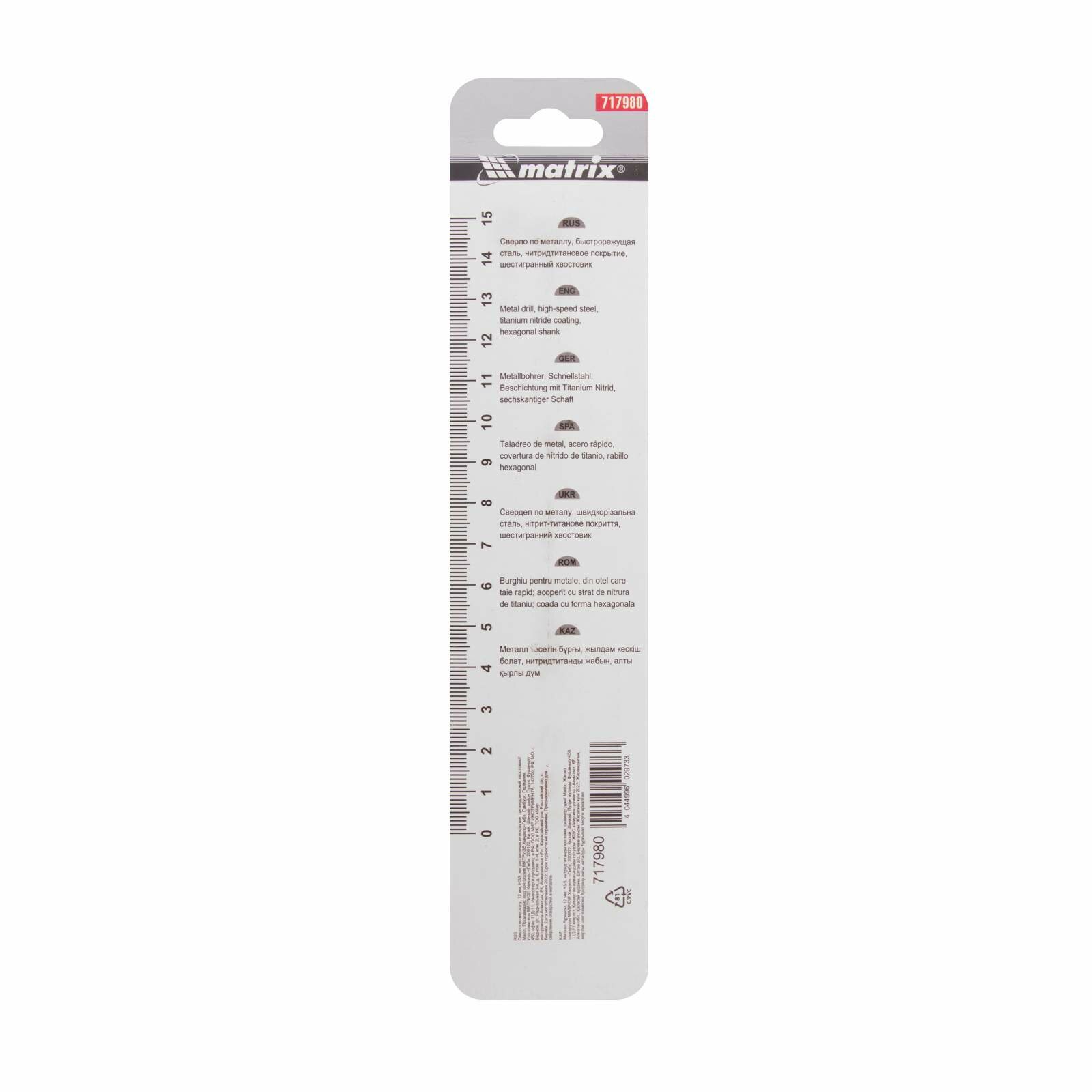 Сверло по металлу MATRIX 717980 12 мм цилиндрический хвостовик