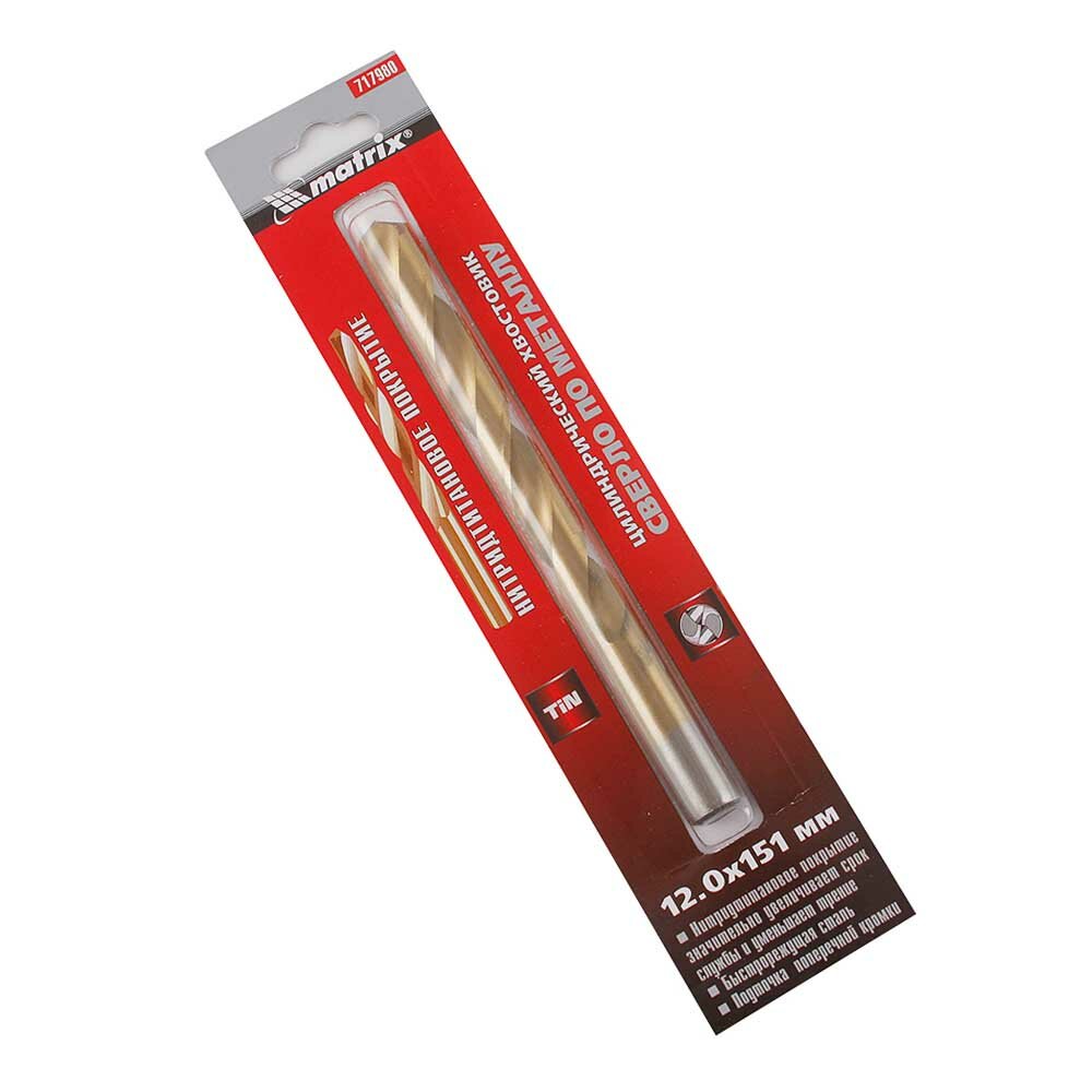 Сверло по металлу Matrix 12 мм, HSS, нитридтитановое покрытие, цилиндрический хвостовик 717980