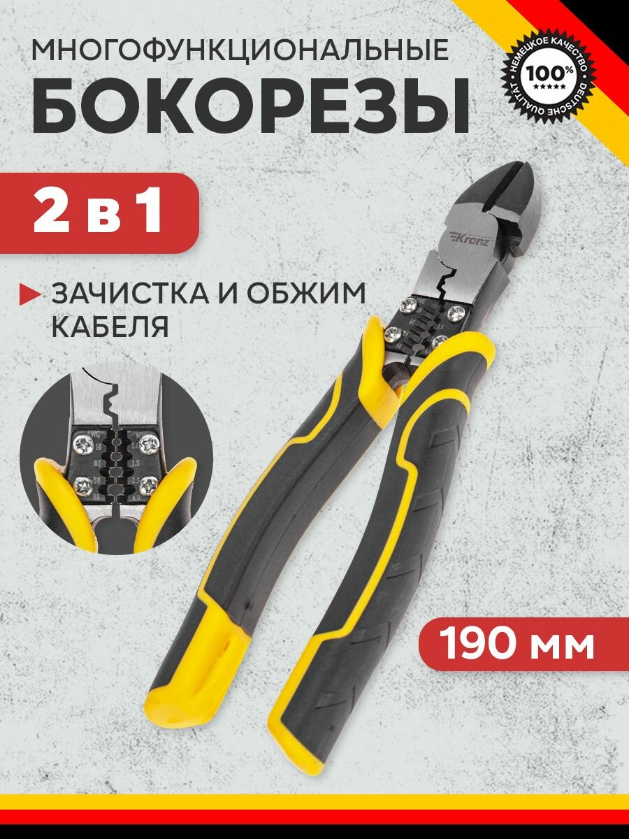 Бокорезы Kranz, многофункциональные, универсальные, 190мм, черный